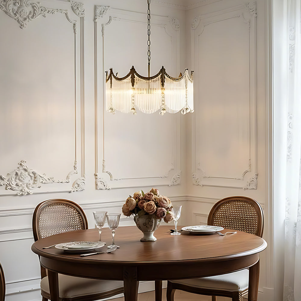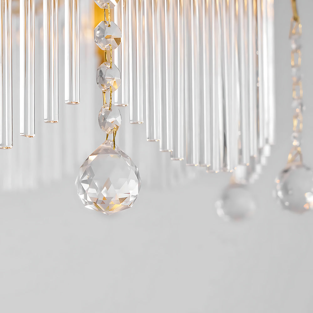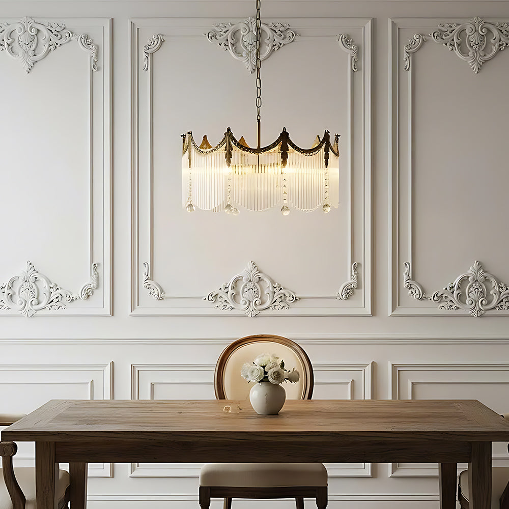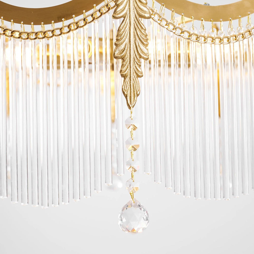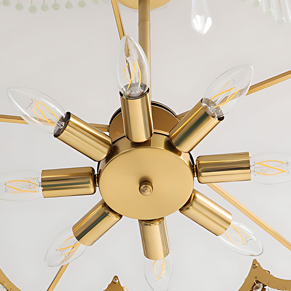 Inspired by a crown, this lamp features a solid brass frame with precision polishing and plating for a warm, rich metallic luster. Multiple built‑in LEDs create a dazzling effect through refraction and reflection. Ideal for living rooms, dining rooms, and banquet halls.