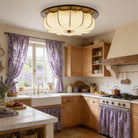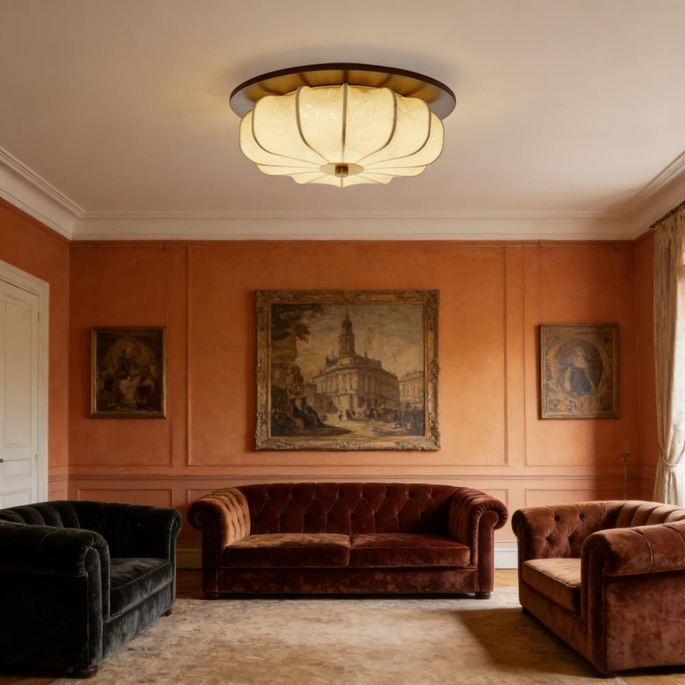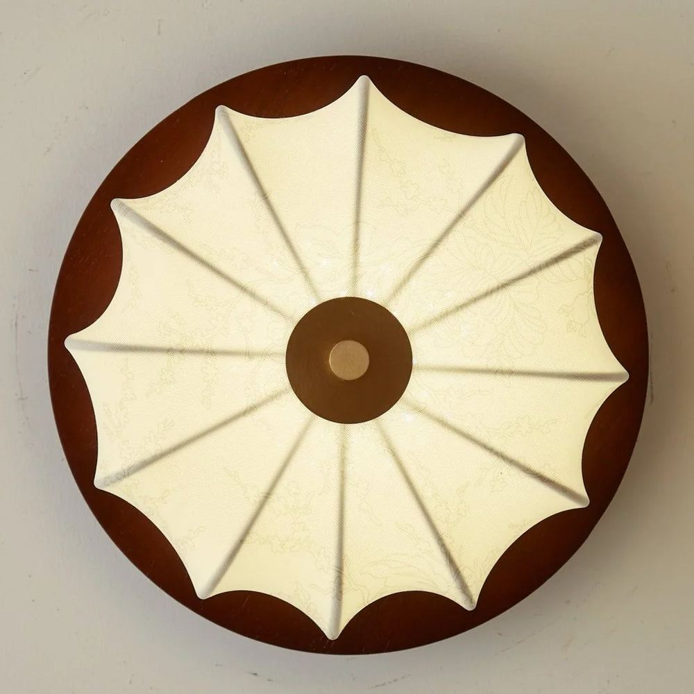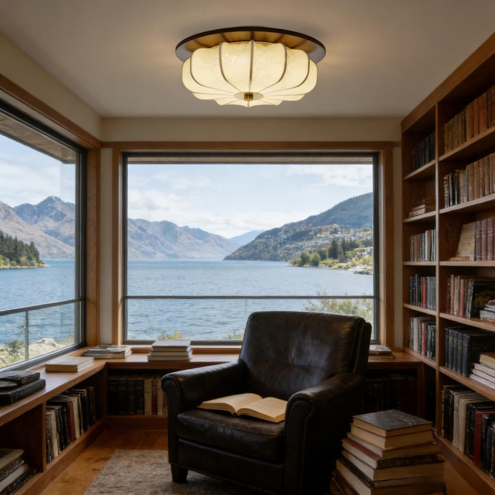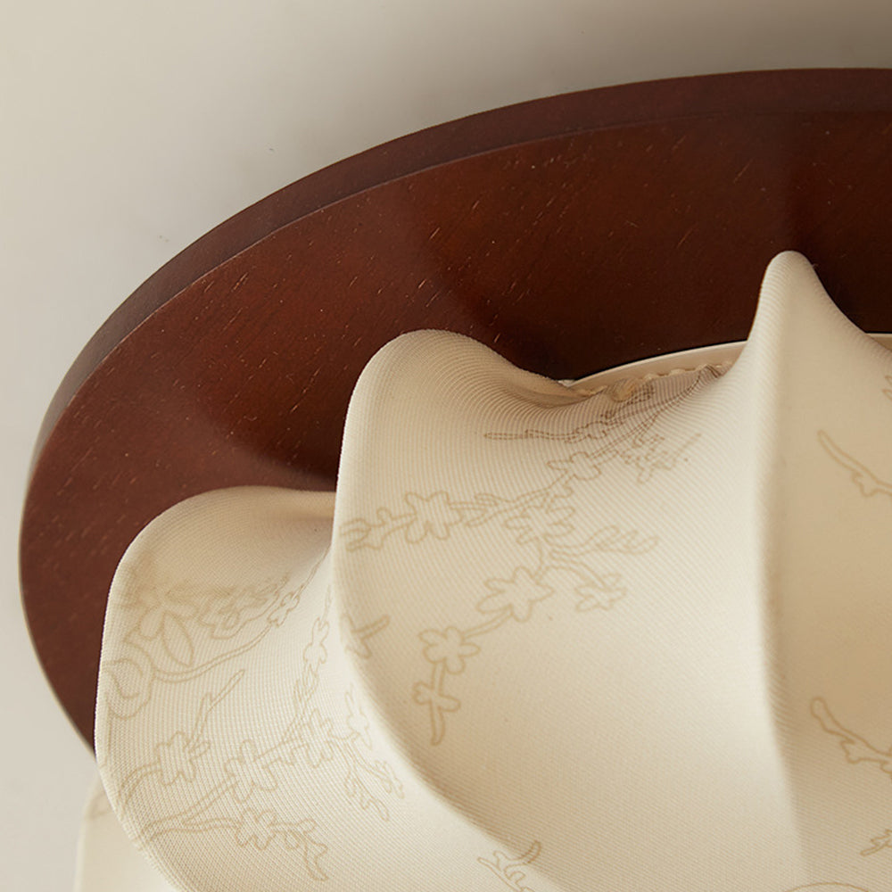 Elevate your space with poetic elegance!Lotus-inspired curved panels cast warm ambient light, etched with intricate patterns. Cream fabric shade + bronzed canopy add modern refinement, delivering quiet luxury to any living space.