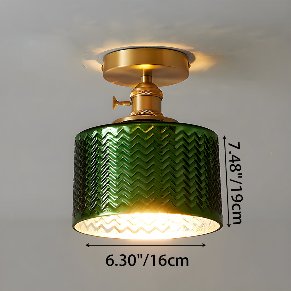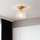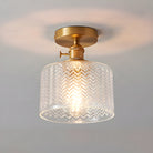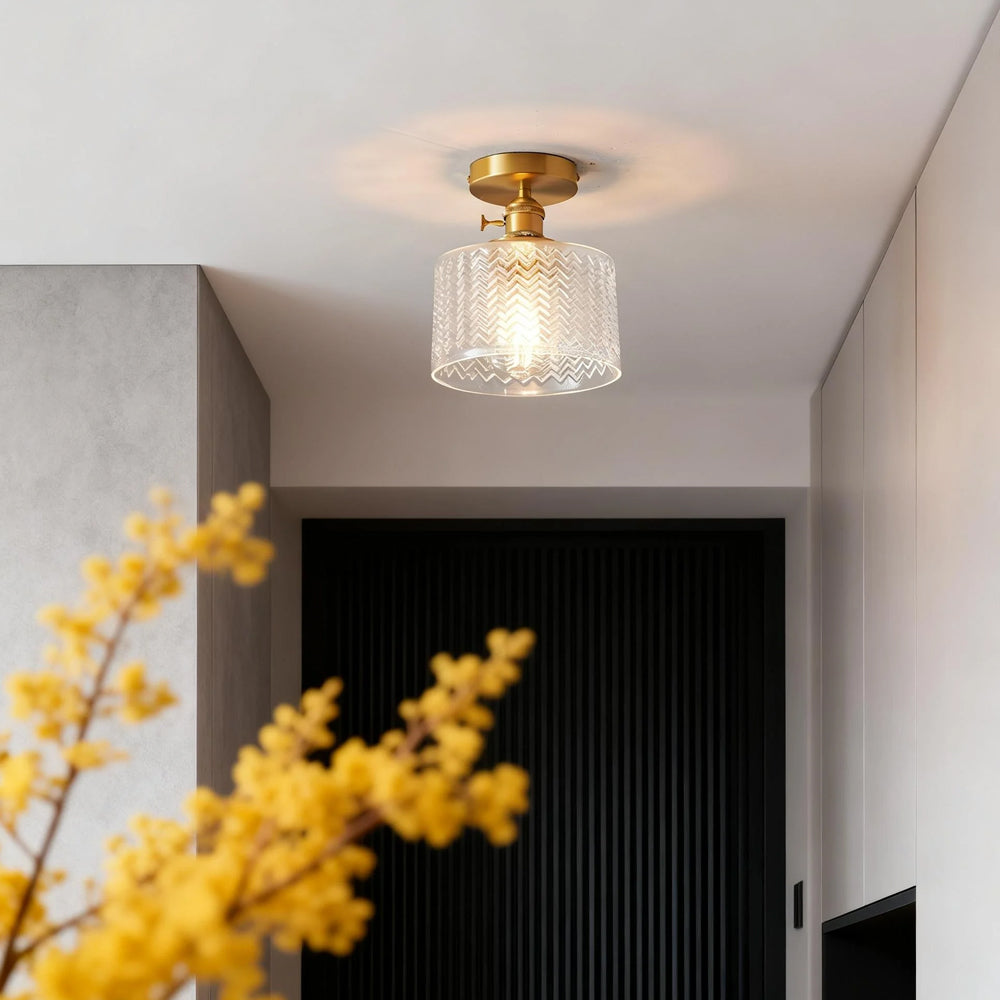 Literary Elegant Cylindrical Brass & Glass Ceiling Light
