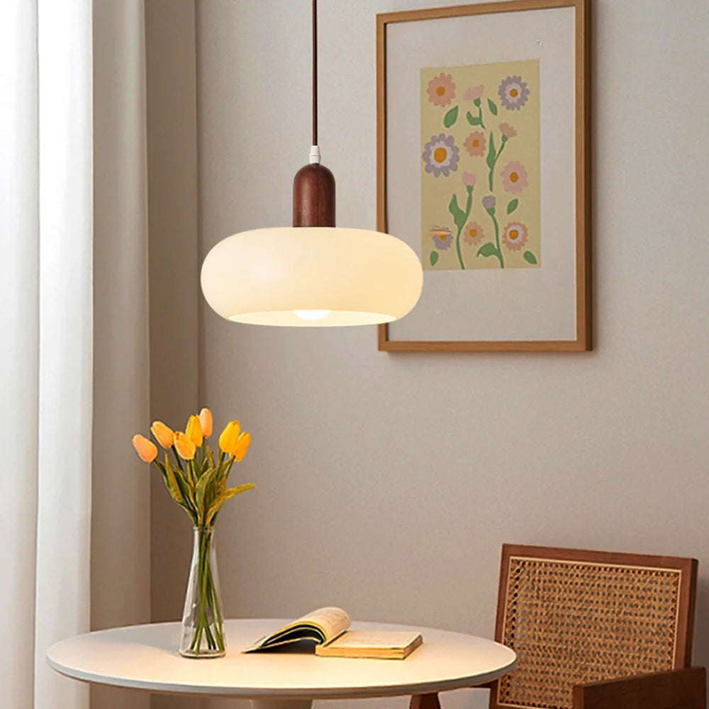 This pendant light elegantly blends classic and modern elements, adding historical charm to your home. Crafted from finely polished wood with natural grain, it features an exquisite glass shade that ensures optimal light transmission and durability.