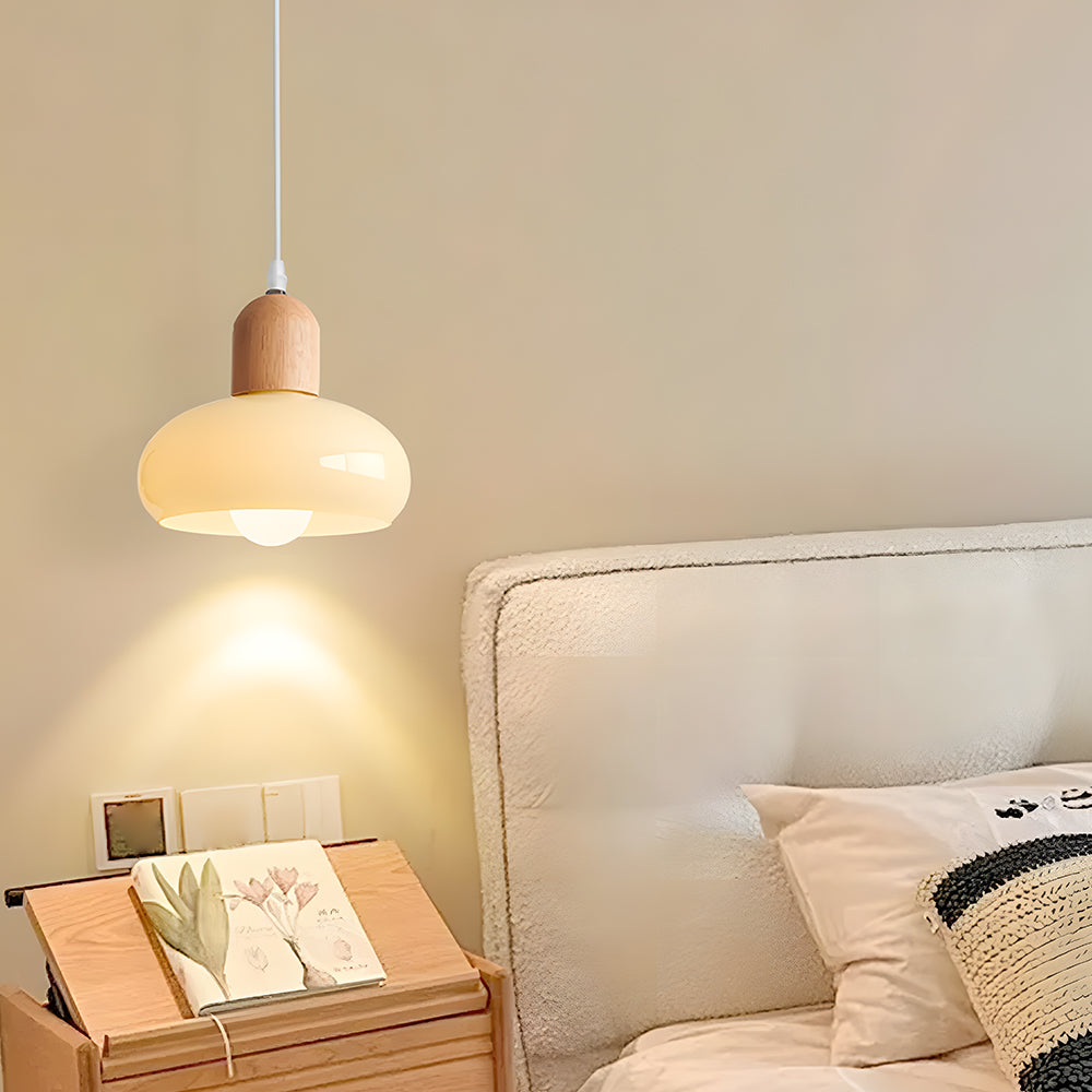 Medieval Wood Glass Single-head Bedroom Pendant Light