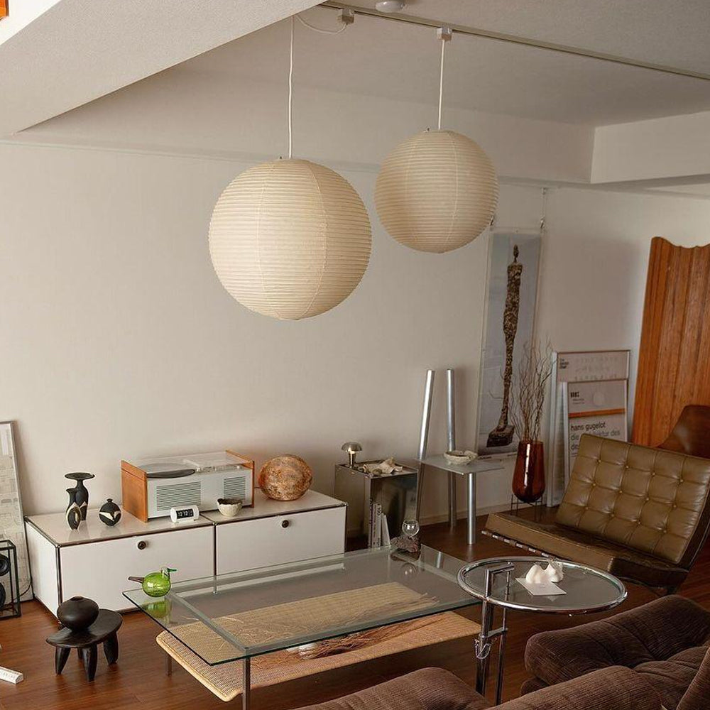 This Series Pendant Lamp merges Japanese craftsmanship with mid-century design. Its iconic paper shade brings elegance and grace to any interior, creating a harmonious statement.