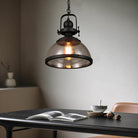 This industrial-style bowl pendant light features a glass shade that diffuses a warm, inviting glow. Perfect for creating a cozy and romantic ambiance over your dining table, kitchen island, or bedroom.