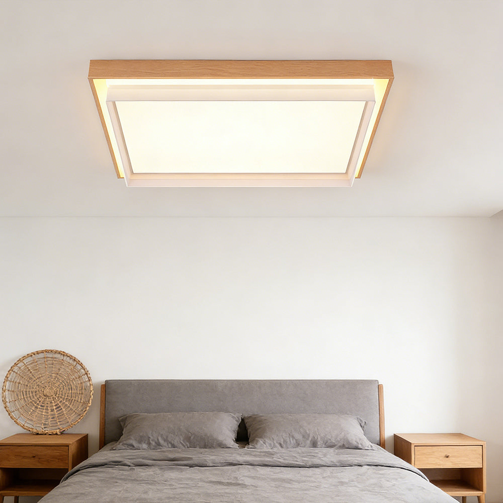 Mid Century Retro Wood Square LED Living Room Ceiling Light