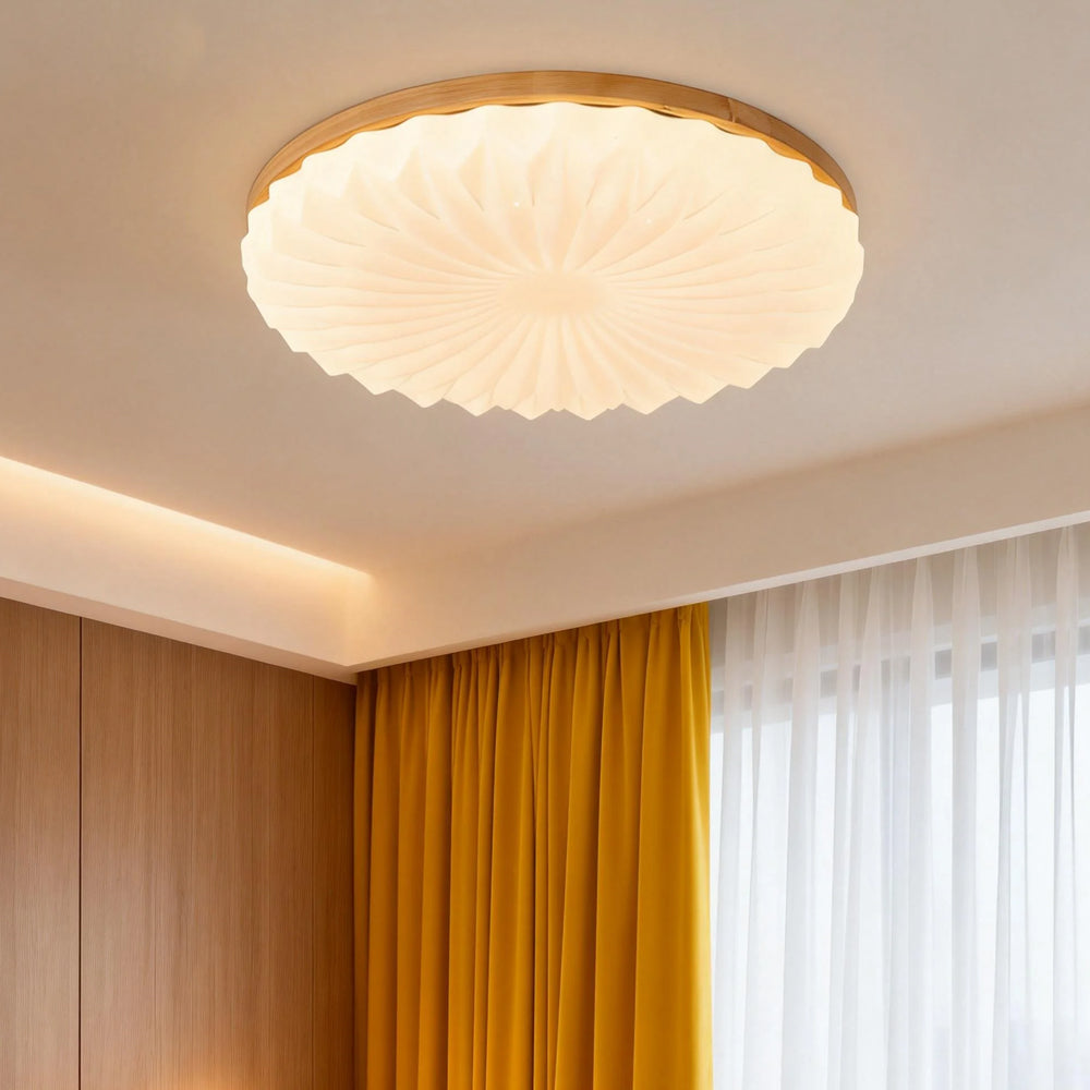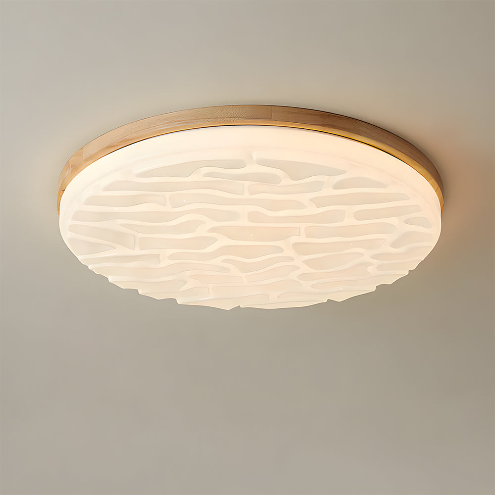 Mid Century Wood Ceiling Light Dimmable LED Flush Mount Ceiling Light