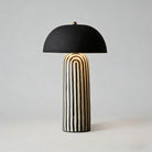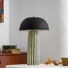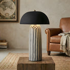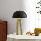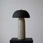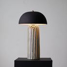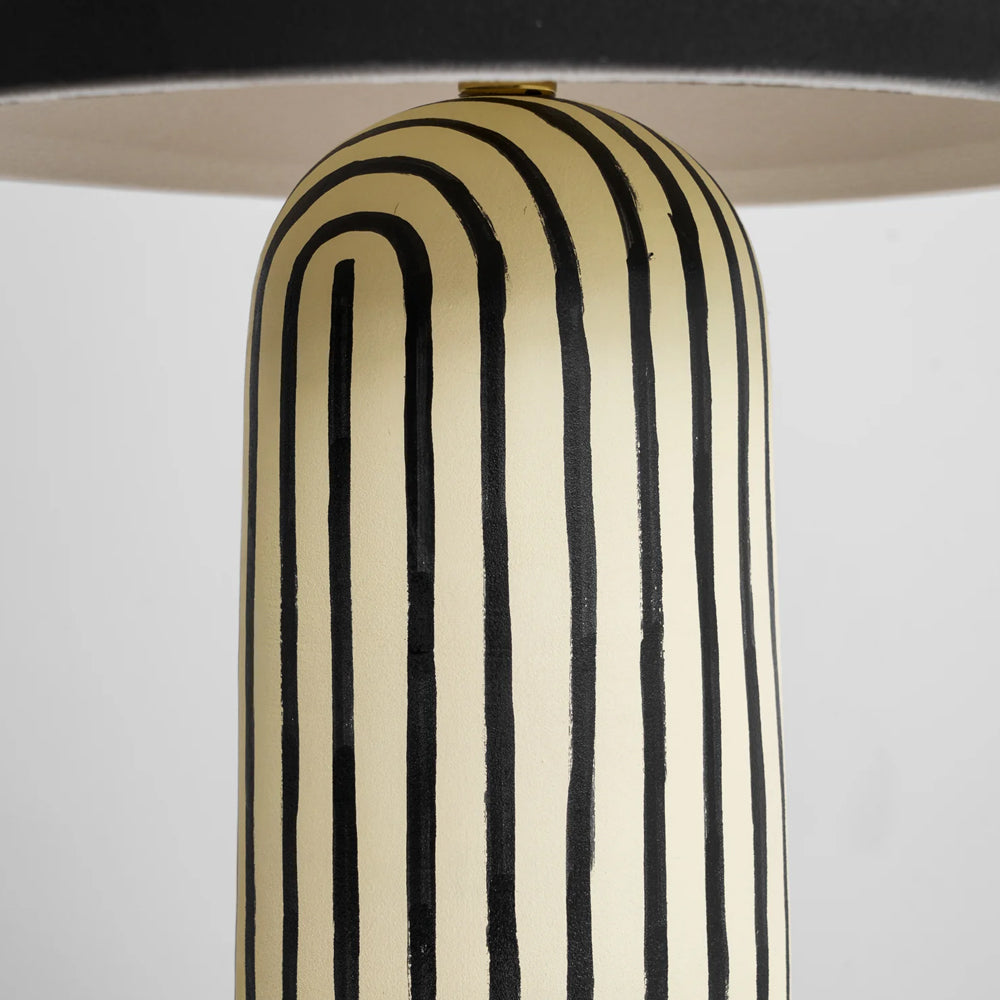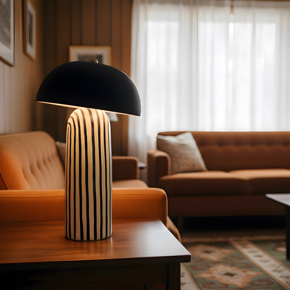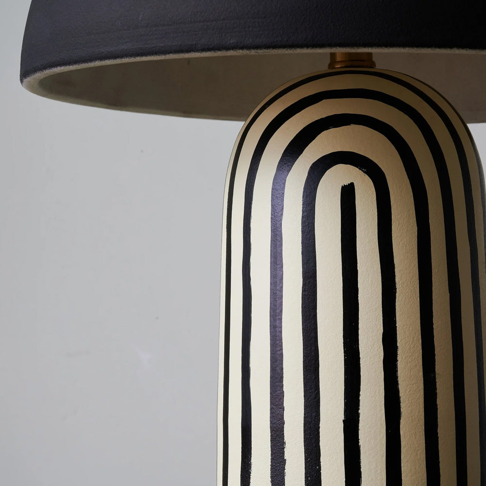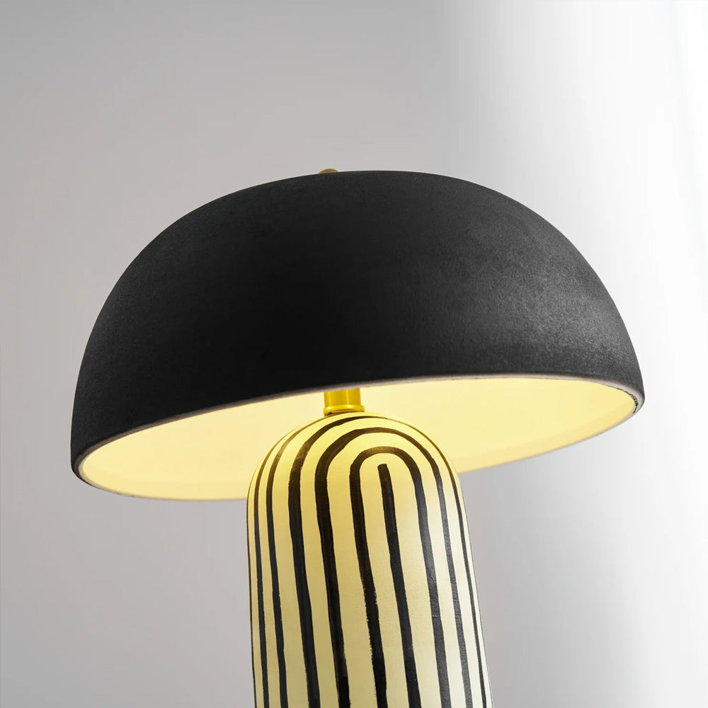 Featuring a hand-painted striped ceramic base and a matte black dome, this mushroom table lamp is a bold, modern statement piece. Perfect for bedside or office tables, it blends playful patterns with sophisticated, confident interior styling.