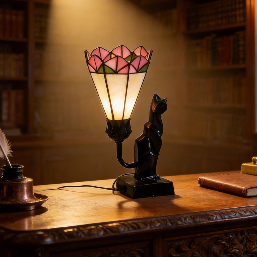 This table lamp reinterprets the classic Tiffany craft through modern minimalist aesthetics, featuring a geometric four-corner structure. It is suitable for studios, studies, hotel suites, and contemporary art spaces.