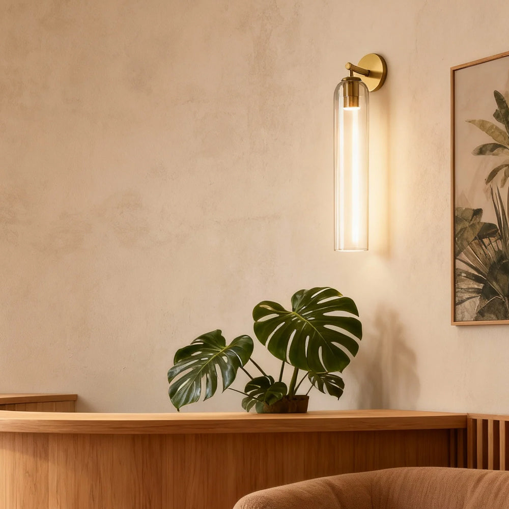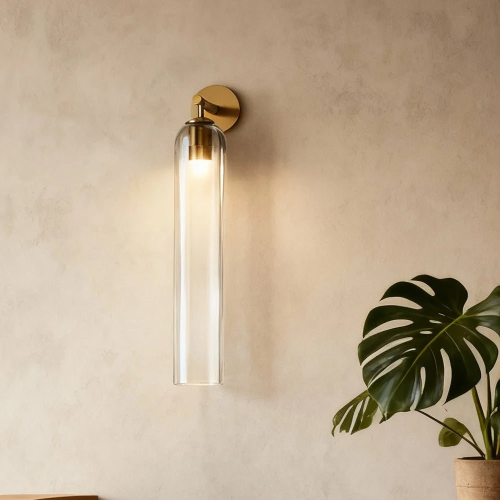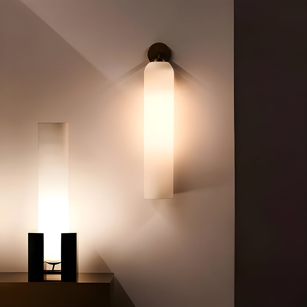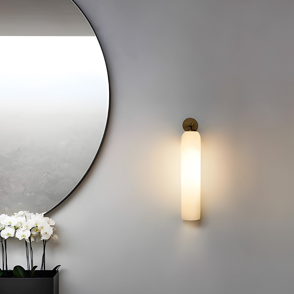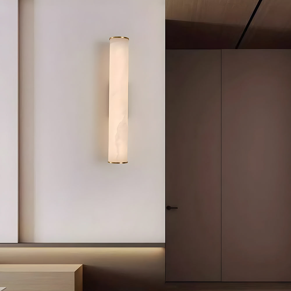 Minimalist Modern Cylindrical Natural Marble & Brass Wall Lamp