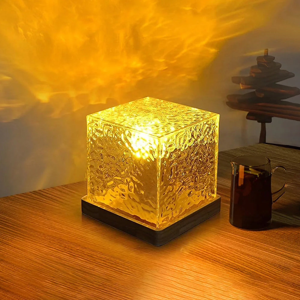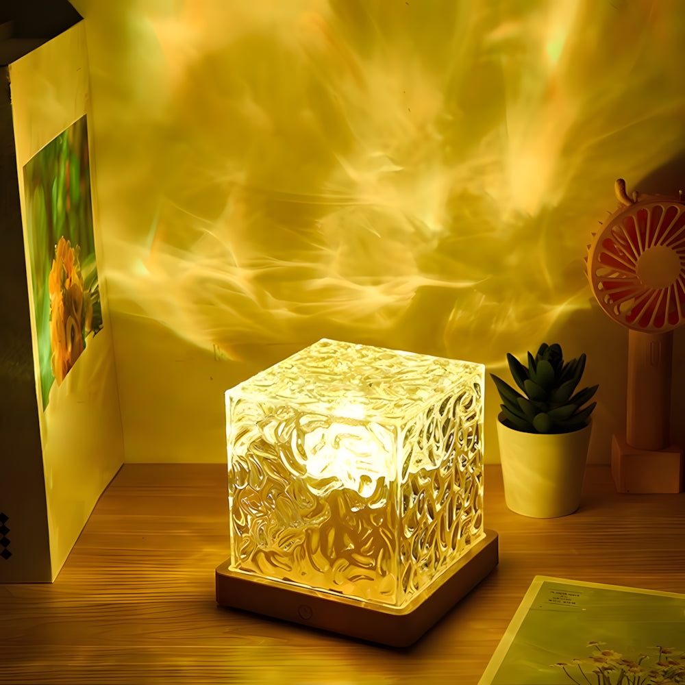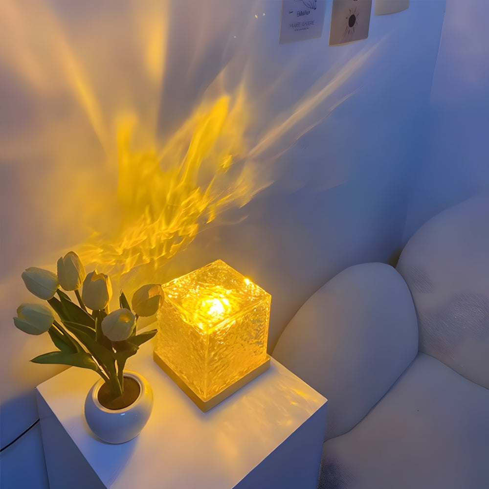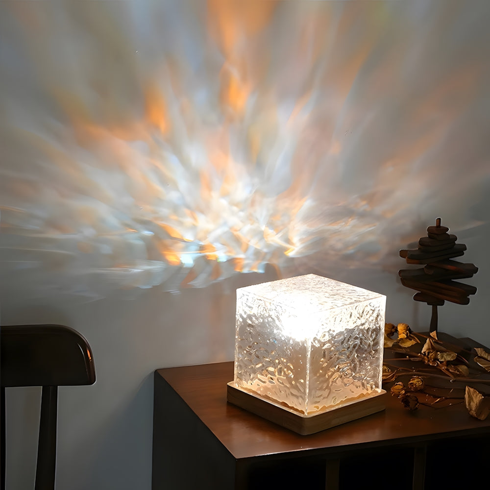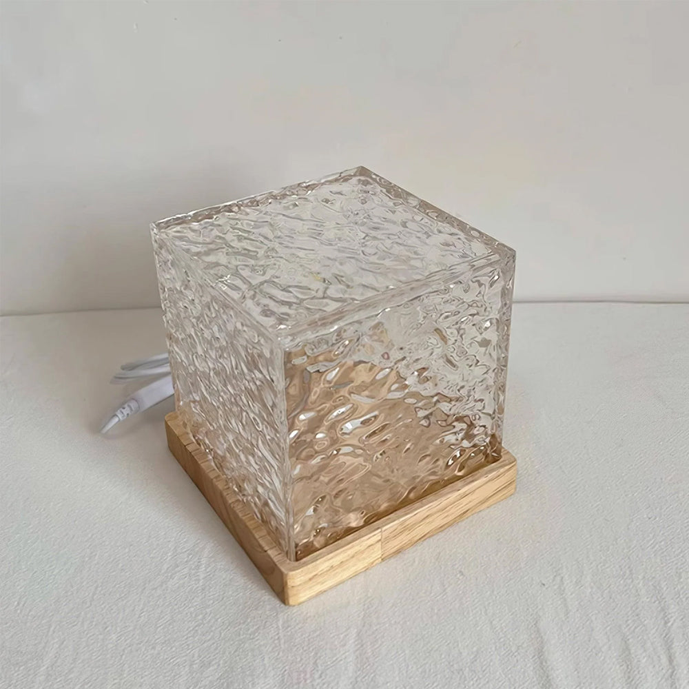 Modern Cube Wooden LED Accent Table Lamp