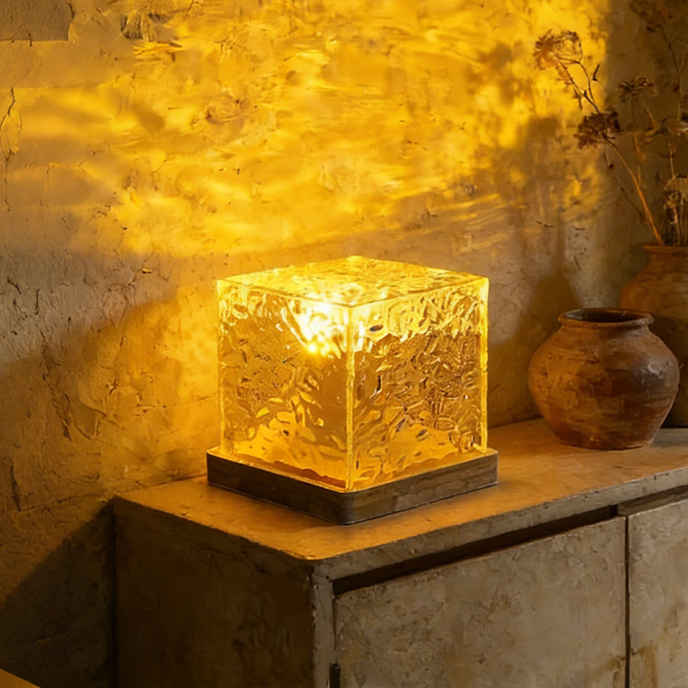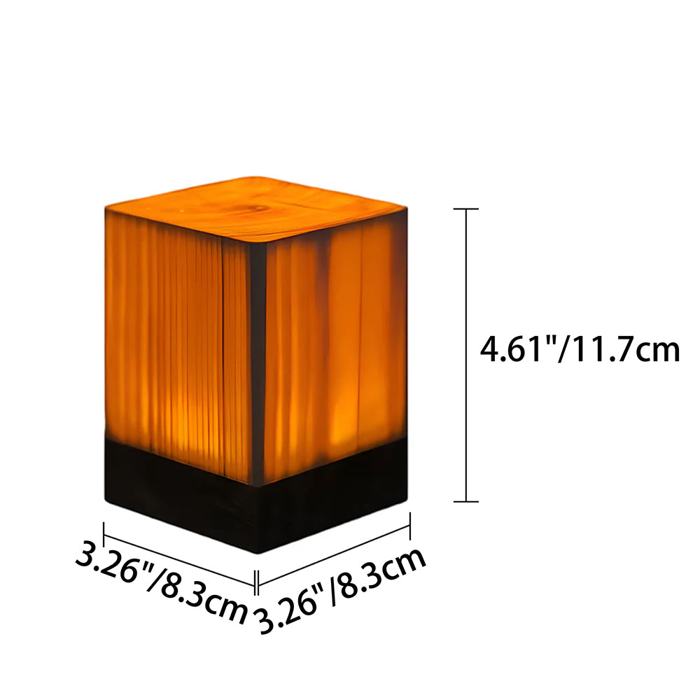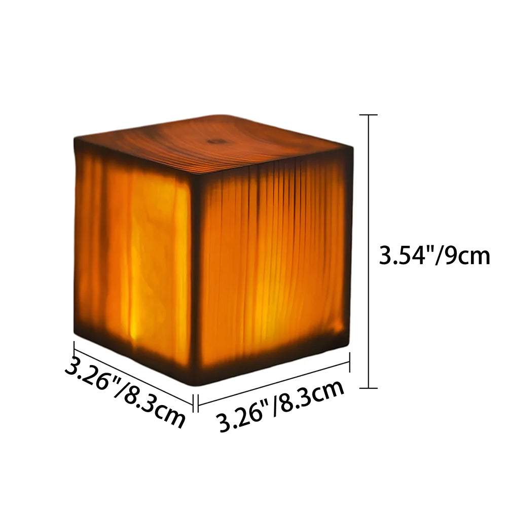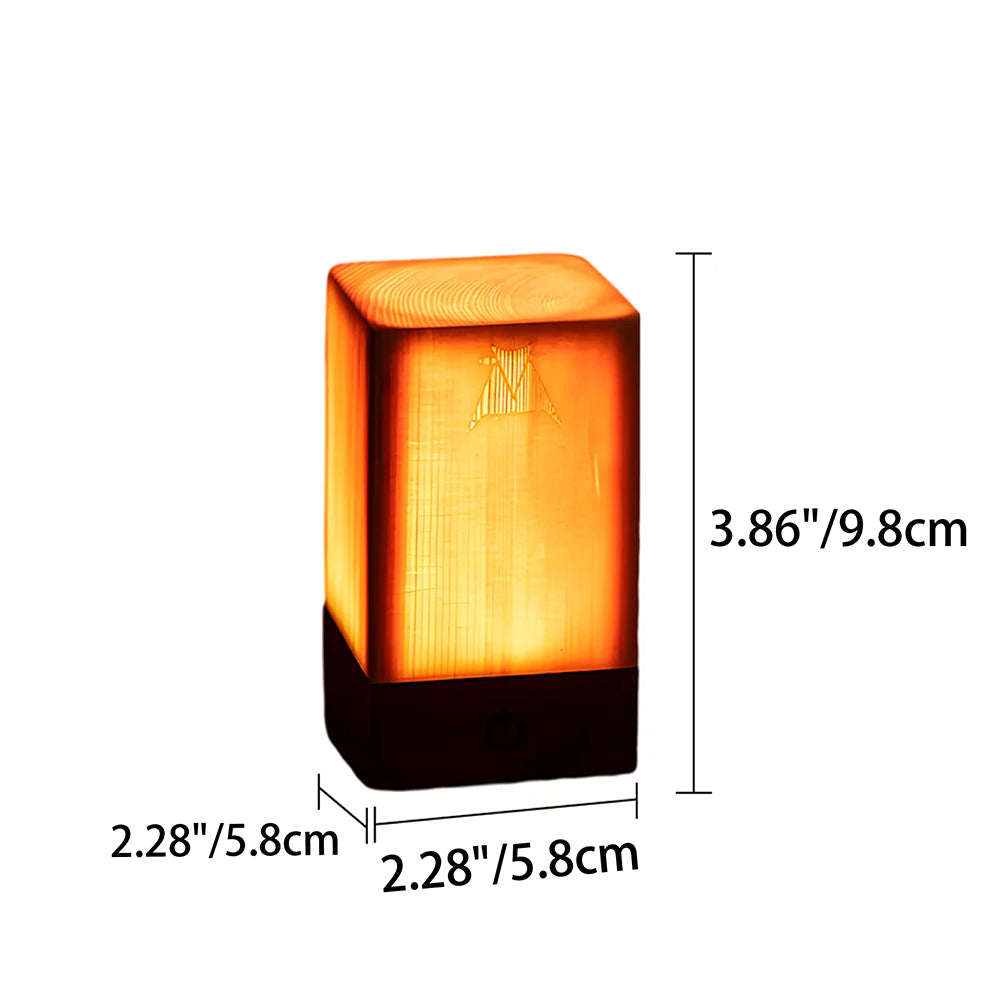 This cordless cube table lamp combines a modern geometric design with the natural warmth of solid pine wood. Featuring touch-sensitive dimming with three brightness levels, it is powered by a rechargeable battery for versatile use in bedrooms, cafes, or outdoors.