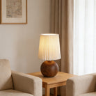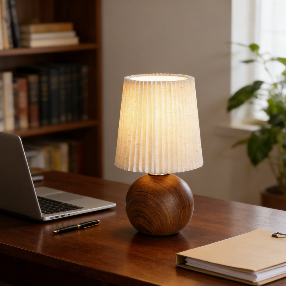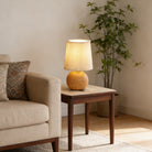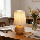 This modern table lamp blends a cylindrical ceramic base with a tapered fabric shade, creating a soft textural contrast. Its minimalist design delivers a warm, diffused glow, ideal for adding serene ambiance to any bedroom or living space.