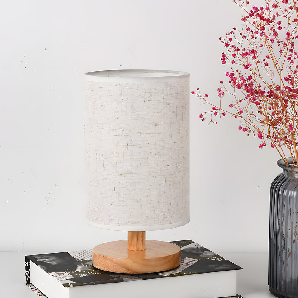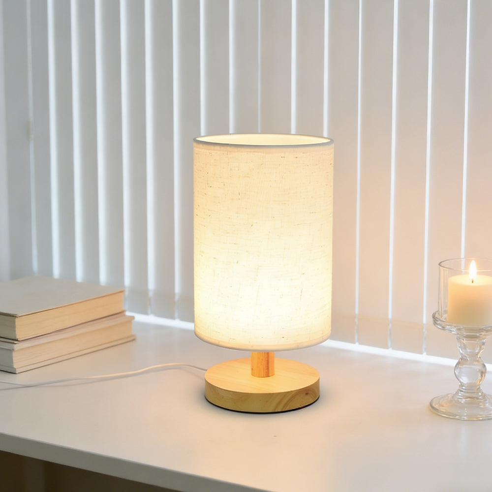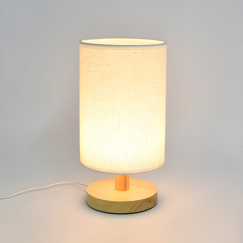 Modern Nordic Cylindrical Fabric & Wood LED Table Lamp