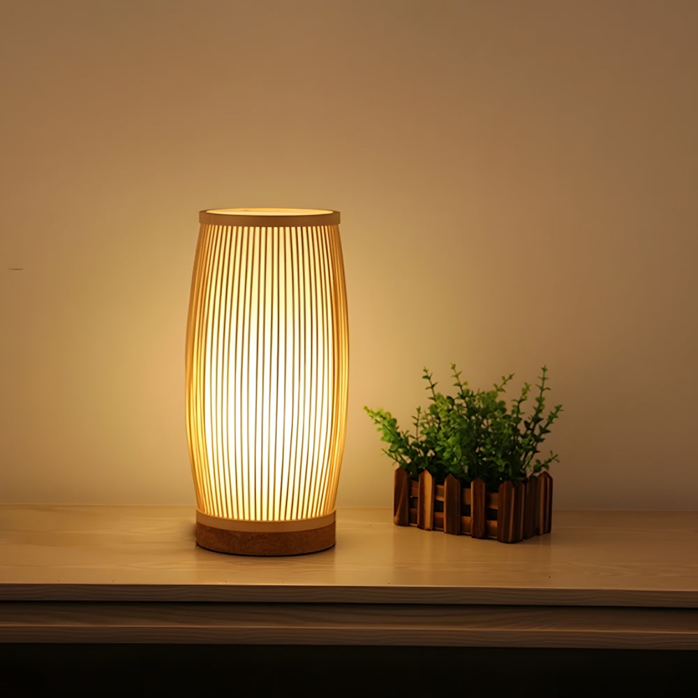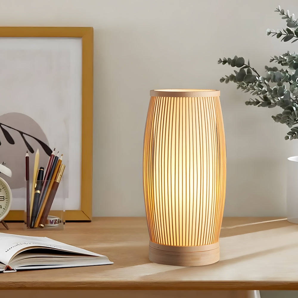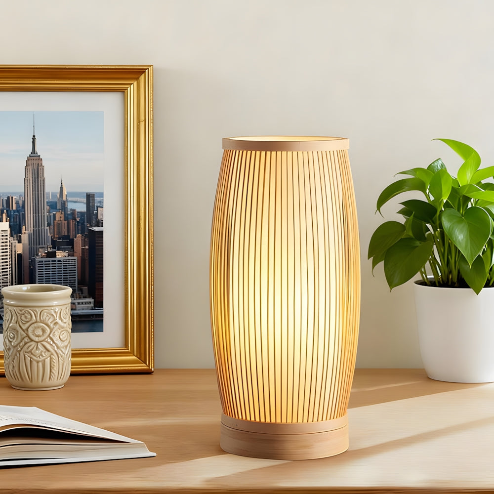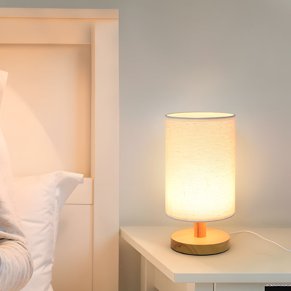 Modern Nordic Cylindrical Fabric & Wood LED Table Lamp