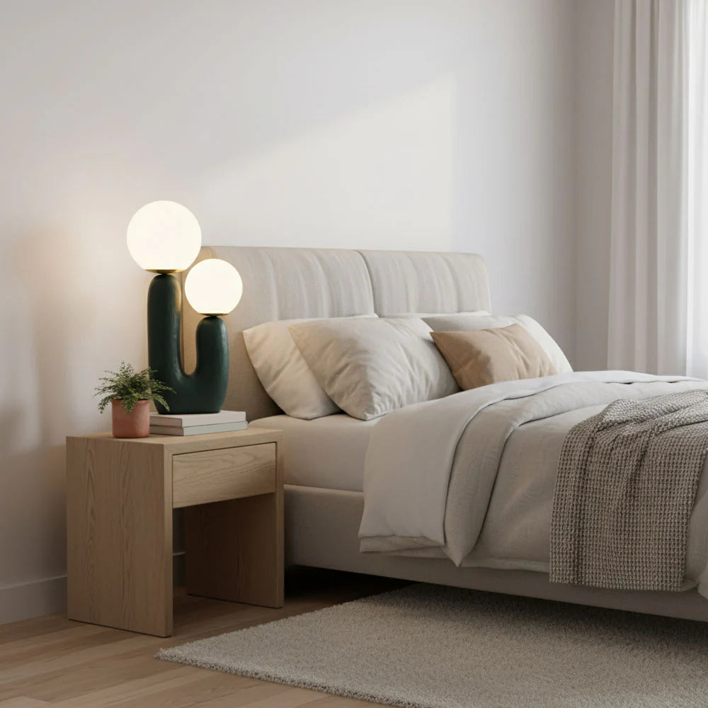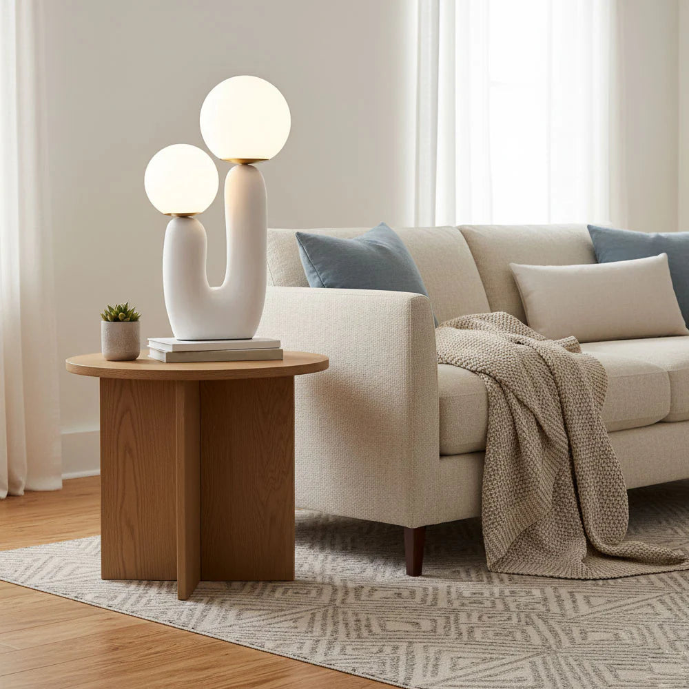 The Oo Table Lamp features a distinctively textured surface that creates a play of light and shadow. Its organic, sculptural form brings a raw yet refined aesthetic to any modern interior.