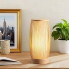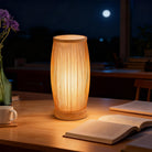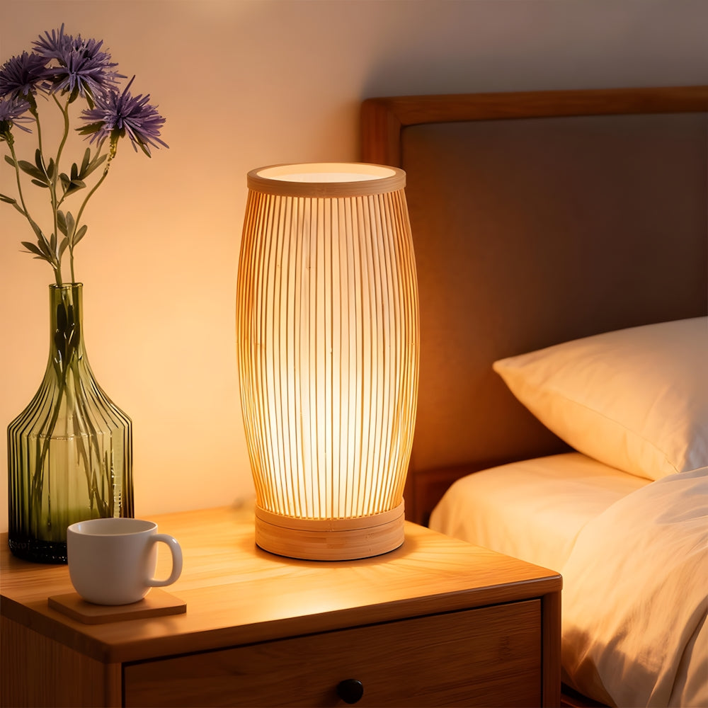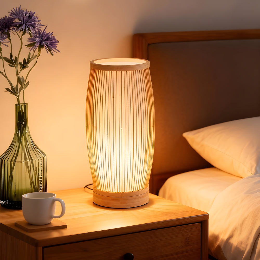 Crafted from woven bamboo, its lantern shape blends sustainability with timeless beauty. The cylindrical core emits a soft, even glow to create a serene retreat. Perfect for bedrooms and living rooms.