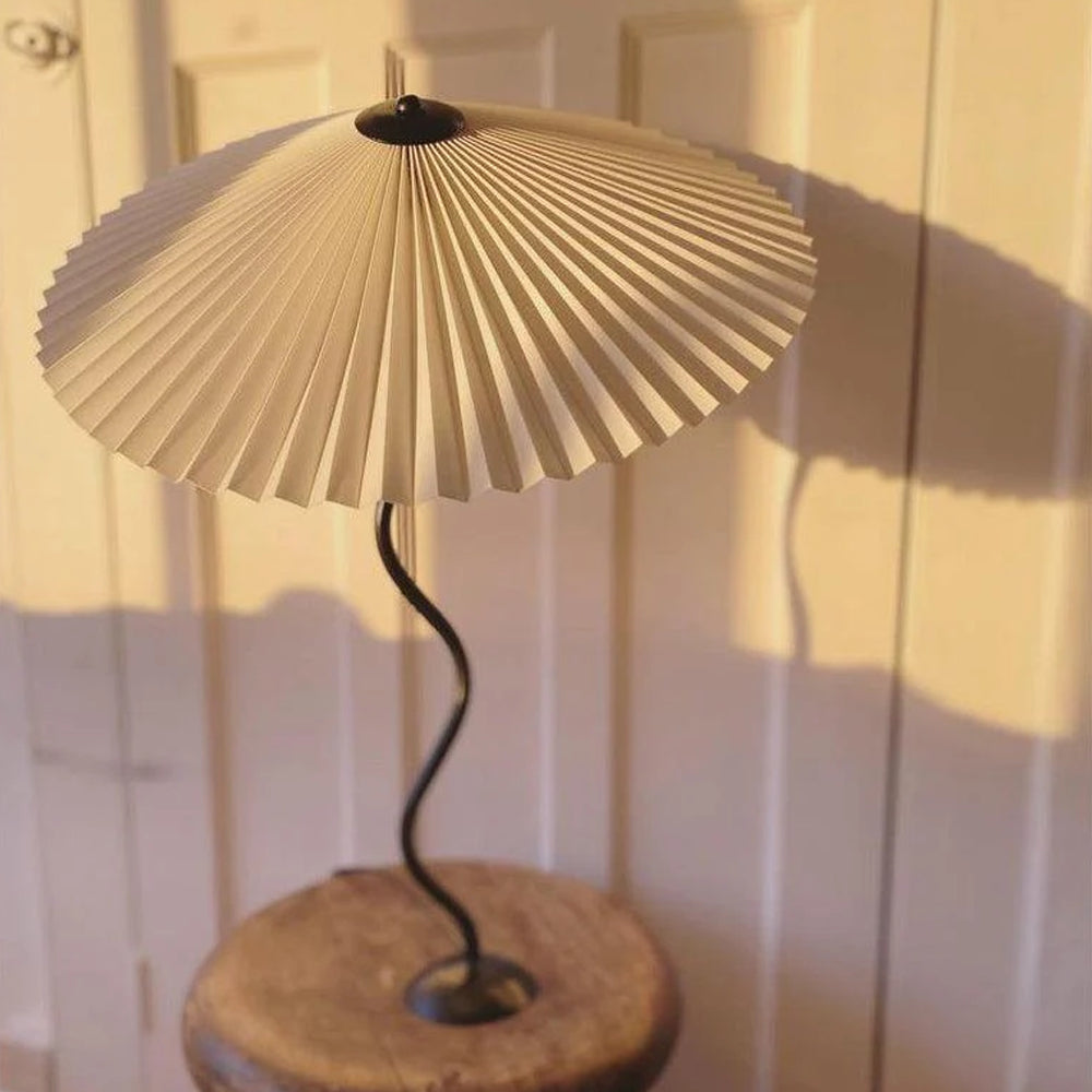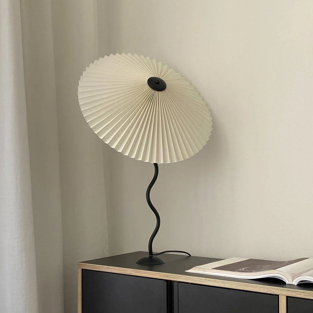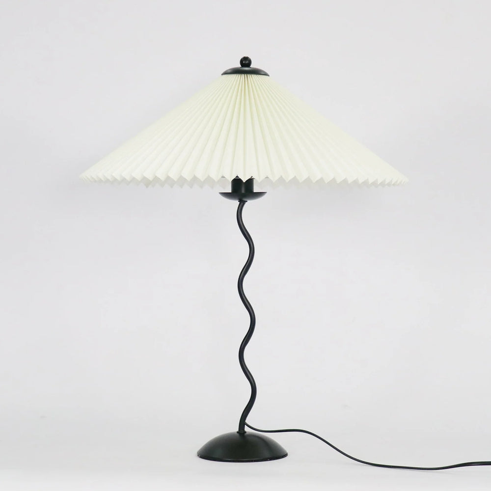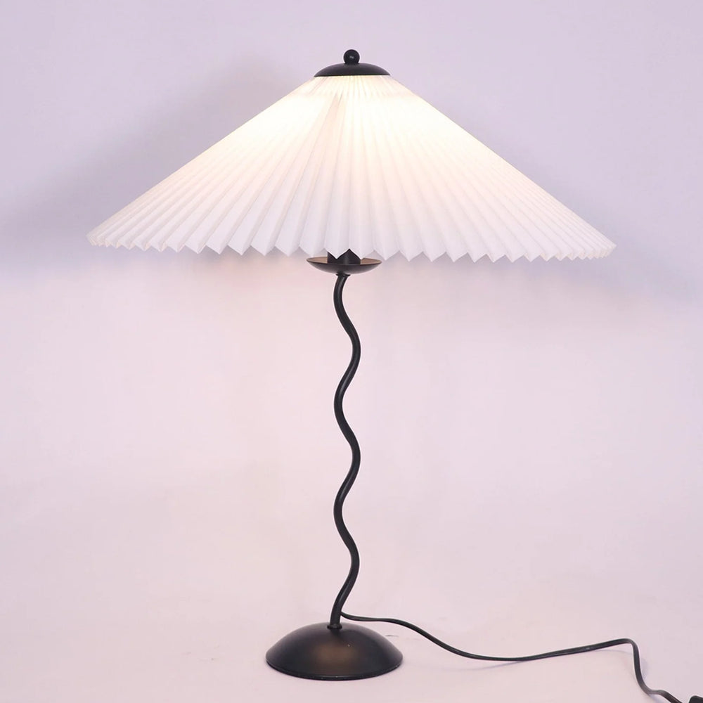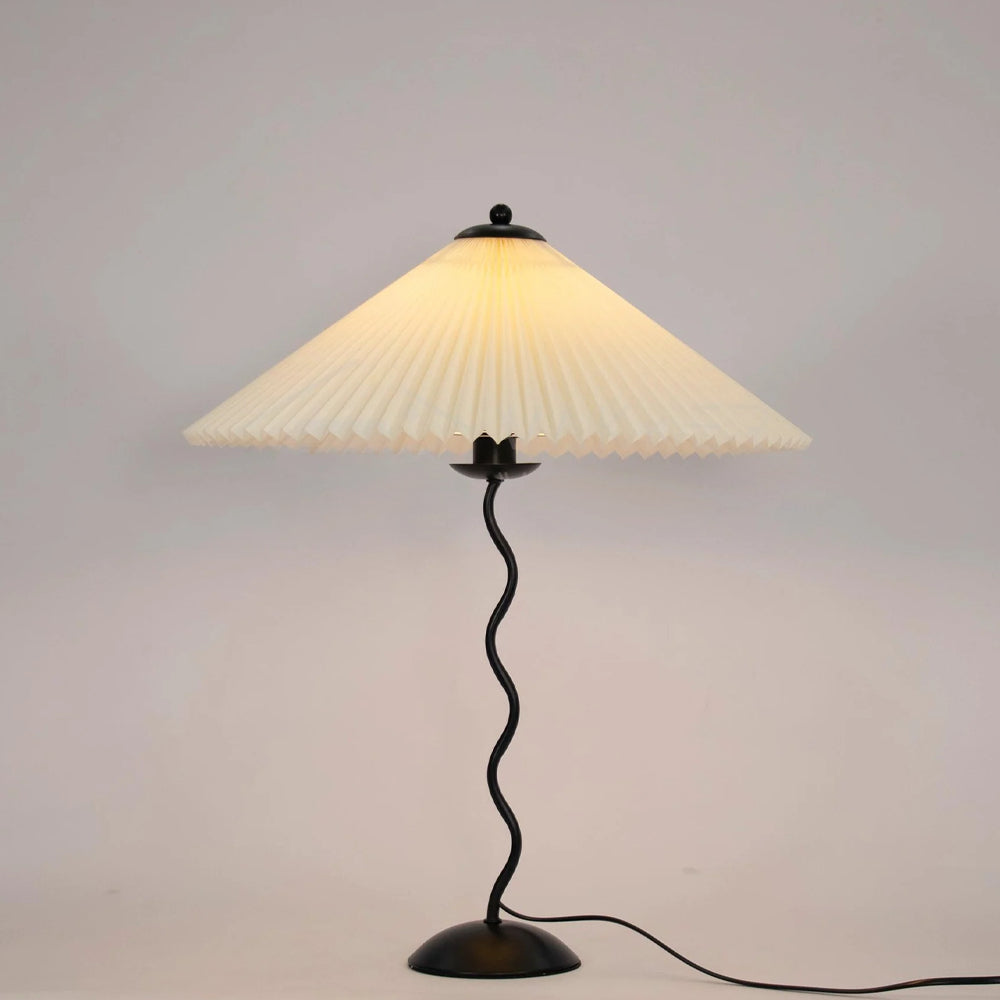 The Origami Squiggle Table Lamp artfully blends Nordic minimalism with a touch of vintage charm. Its pleated fabric shade and elegantly curved stem create a warm, cozy glow, making it a perfect decorative accent for your living room or bedroom.