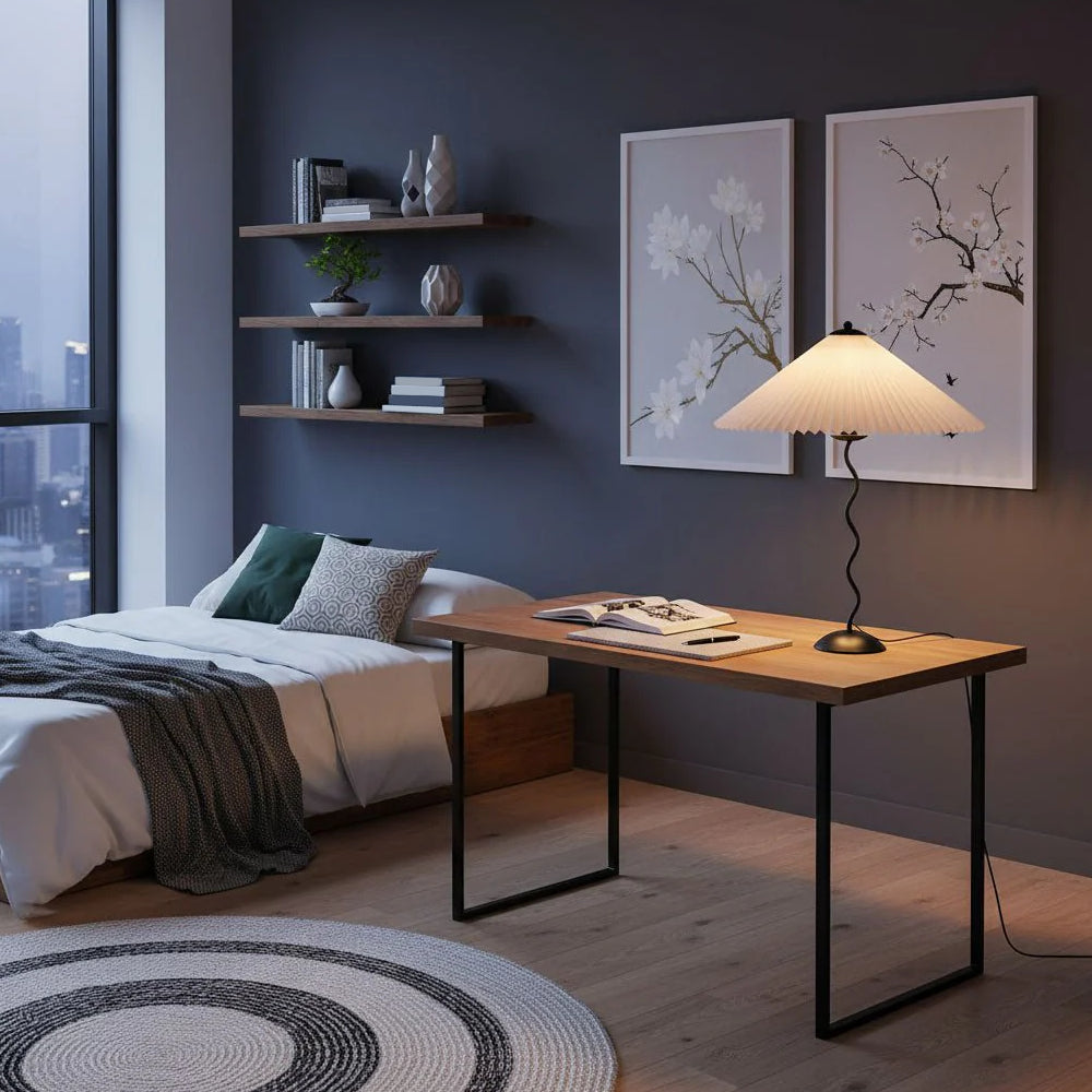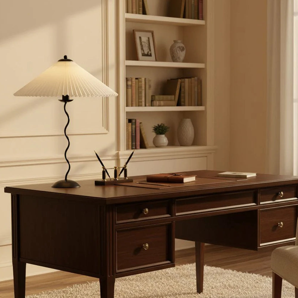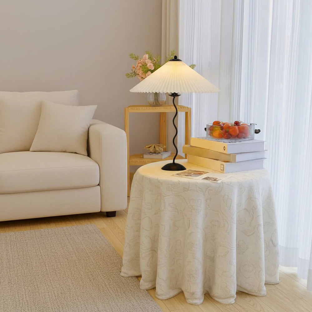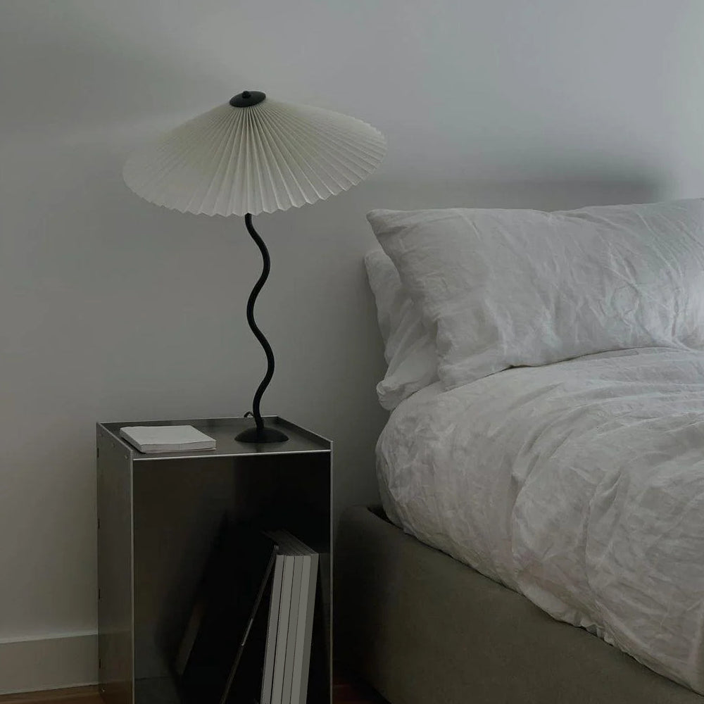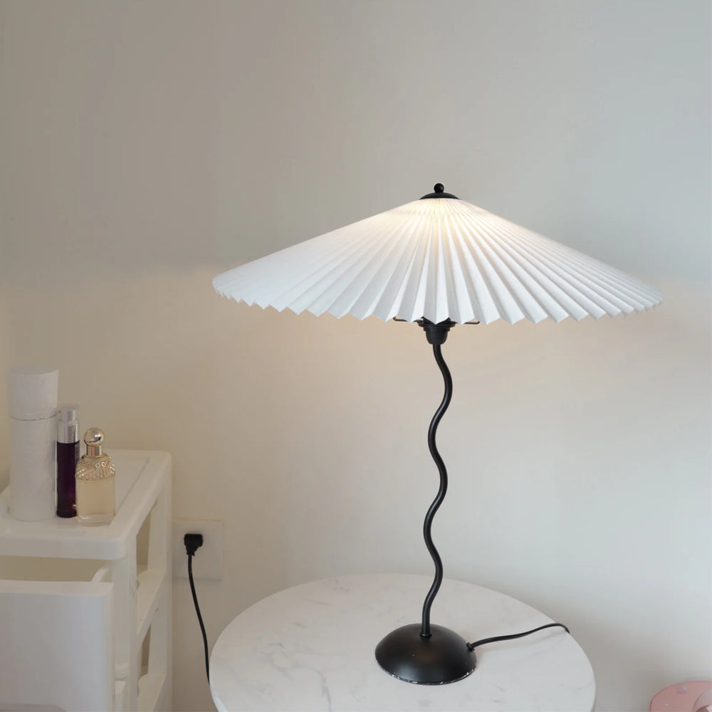 The Origami Squiggle Table Lamp artfully blends Nordic minimalism with a touch of vintage charm. Its pleated fabric shade and elegantly curved stem create a warm, cozy glow, making it a perfect decorative accent for your living room or bedroom.