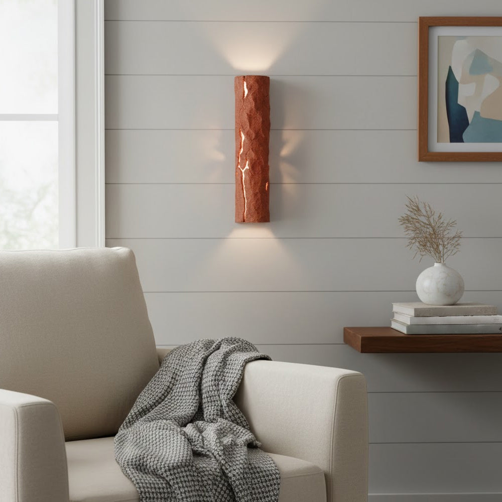 Crafted from durable resin with a rustic stone finish, this wall light adds a touch of natural, textured charm to any interior space. It features a warm and energy-efficient LED source, providing soft, inviting light perfect for creating a cozy atmosphere in living rooms, hallways, or bedrooms.