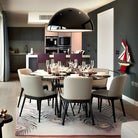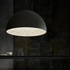 The Suspension Lamp, inspired by our planet's form, brings sophisticated elegance to any room. Its cast plaster diffuser in coffe, black, white, or gold creates a luxurious, diffused glow.
