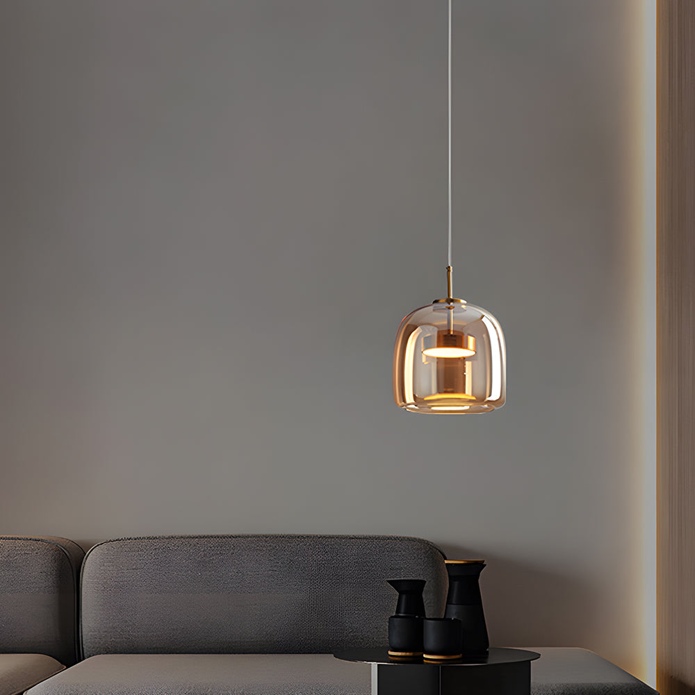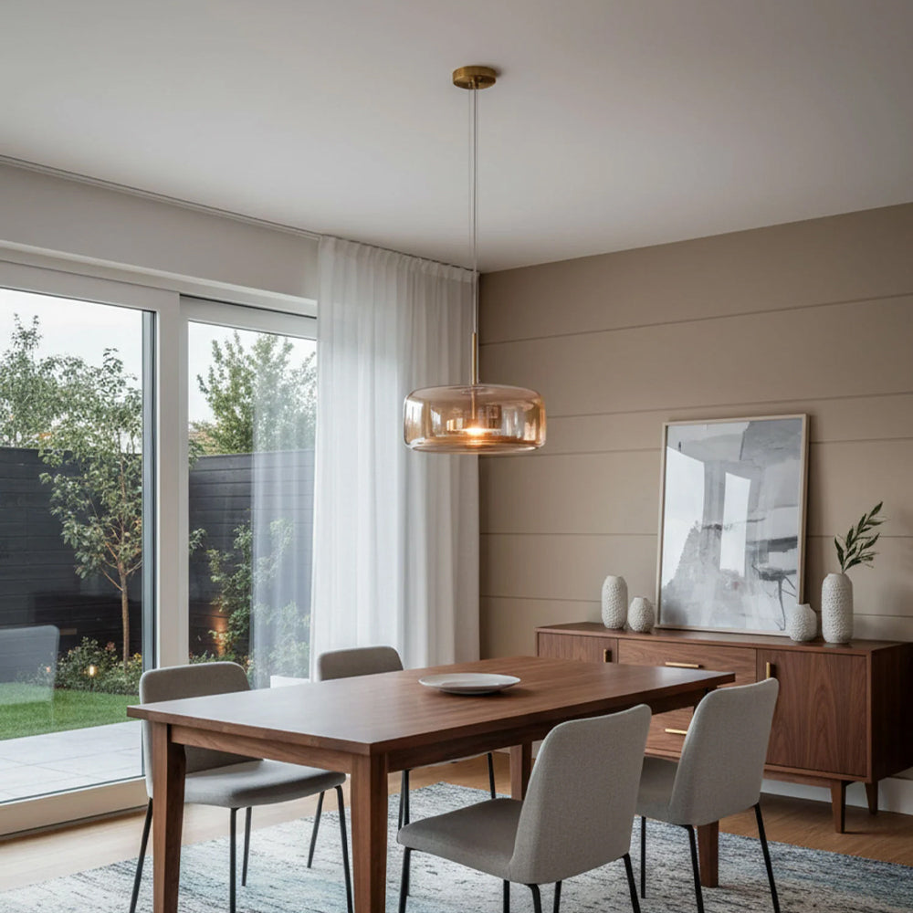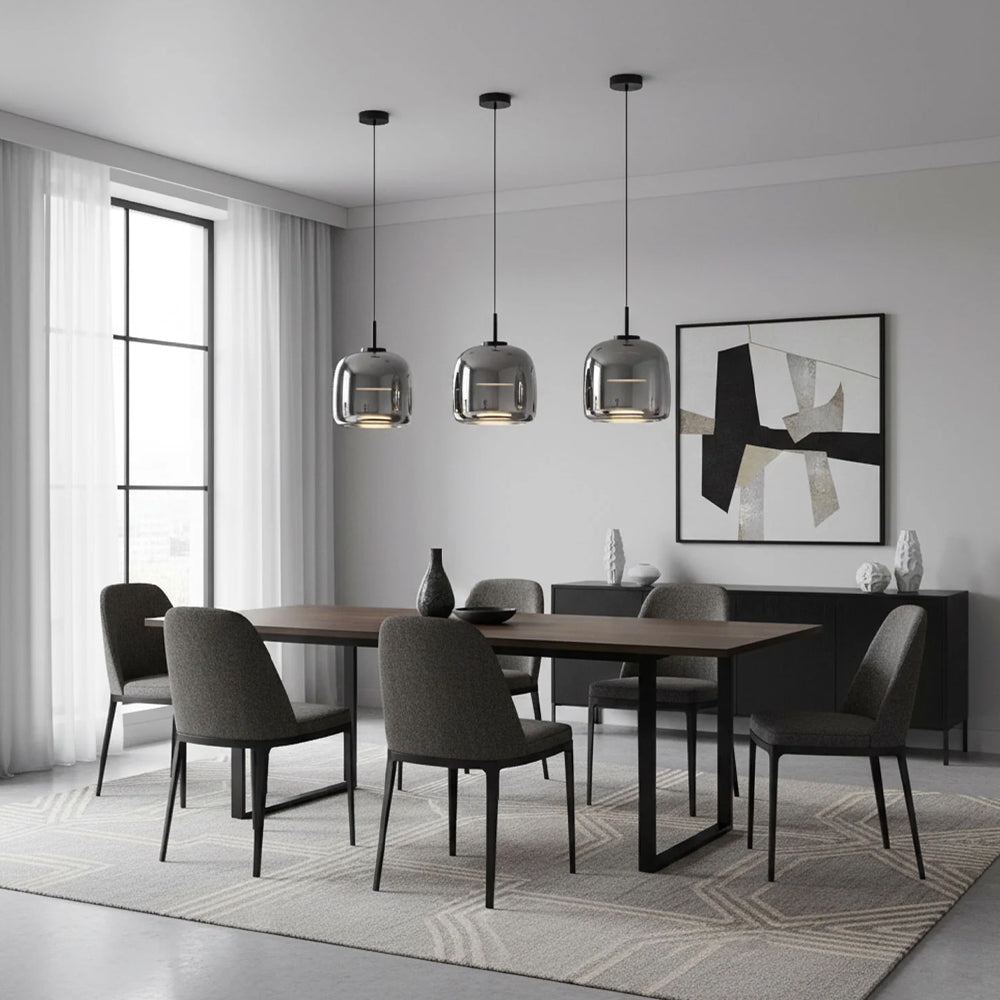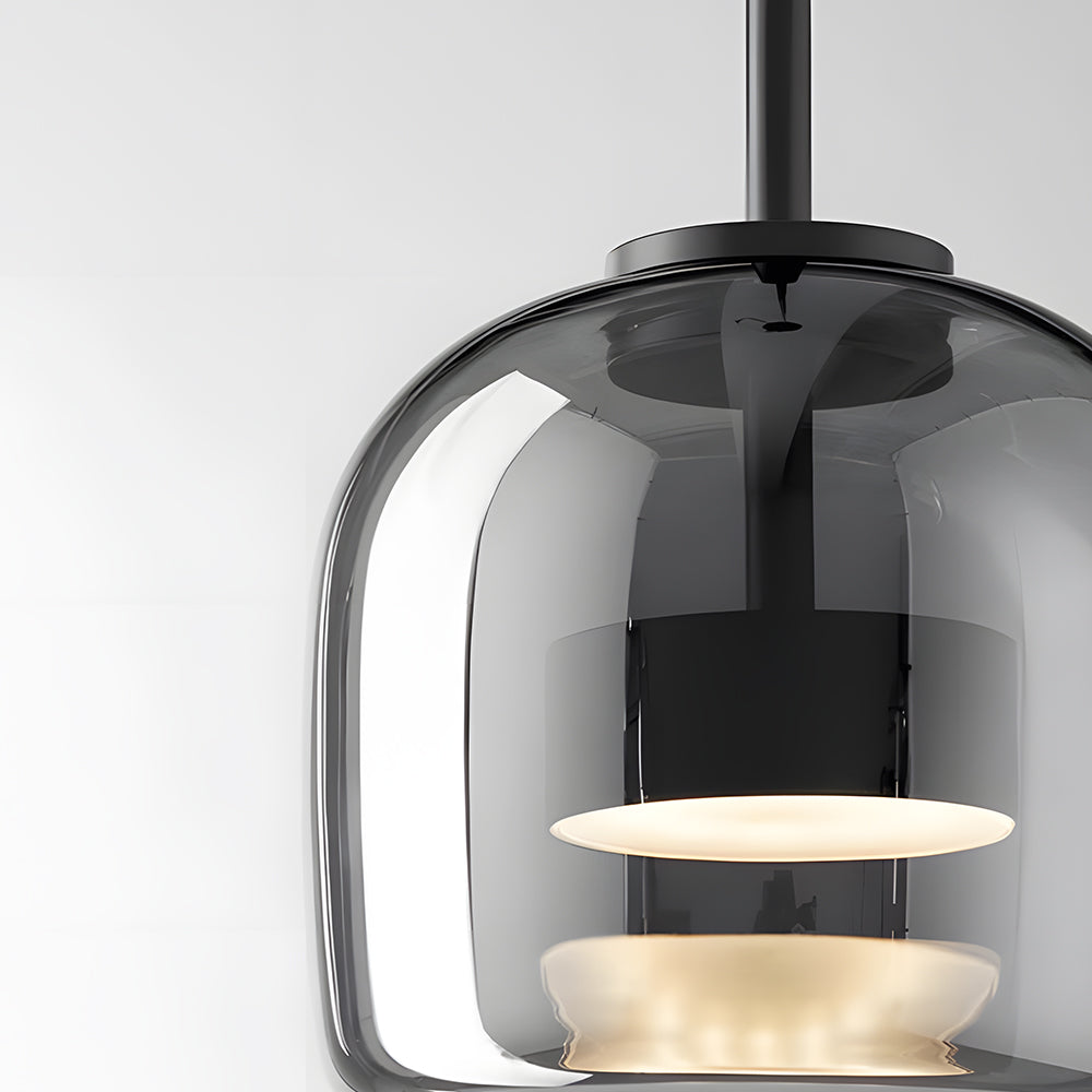 A modern pendant lamp featuring a smoked glass dome that blends vintage charm with minimalist design. Its warm glow and metal accents create an inviting ambiance, perfect for kitchens, lofts, and offices as a focal point of urban style.