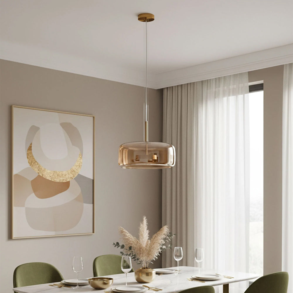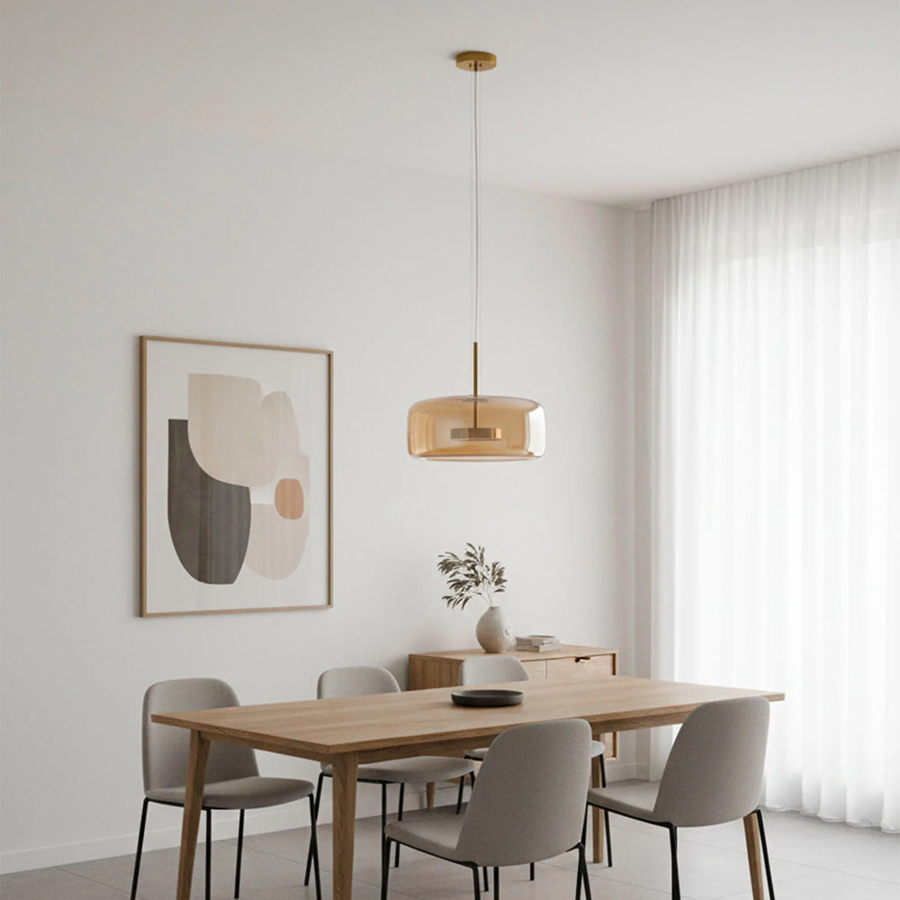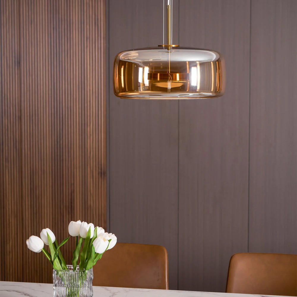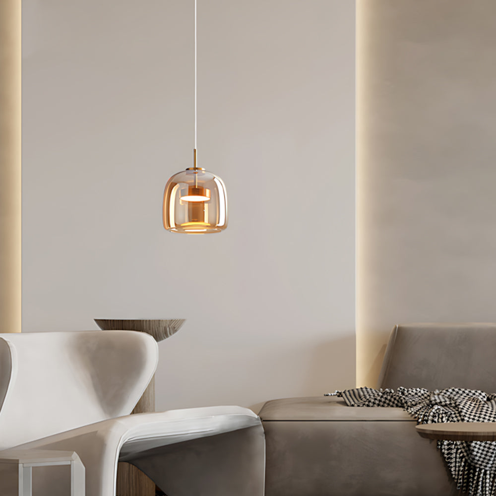 A modern pendant lamp featuring a smoked glass dome that blends vintage charm with minimalist design. Its warm glow and metal accents create an inviting ambiance, perfect for kitchens, lofts, and offices as a focal point of urban style.