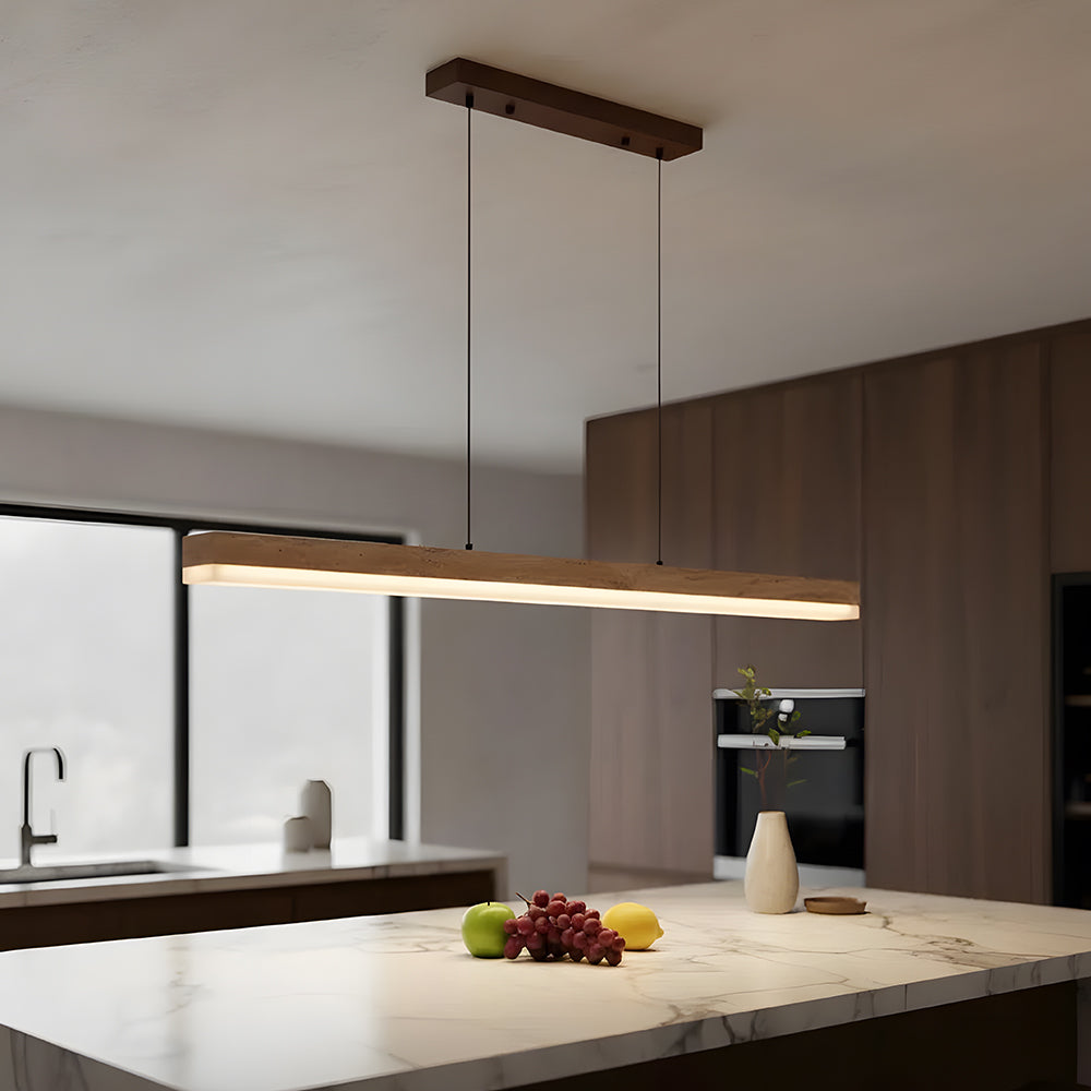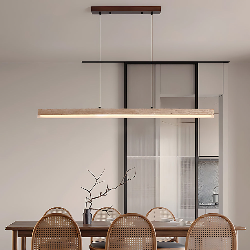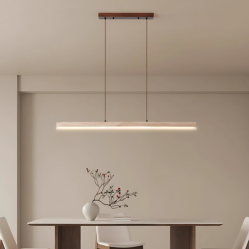 Understated Retro Travertine And Walnut Wood Linear Pendant Light