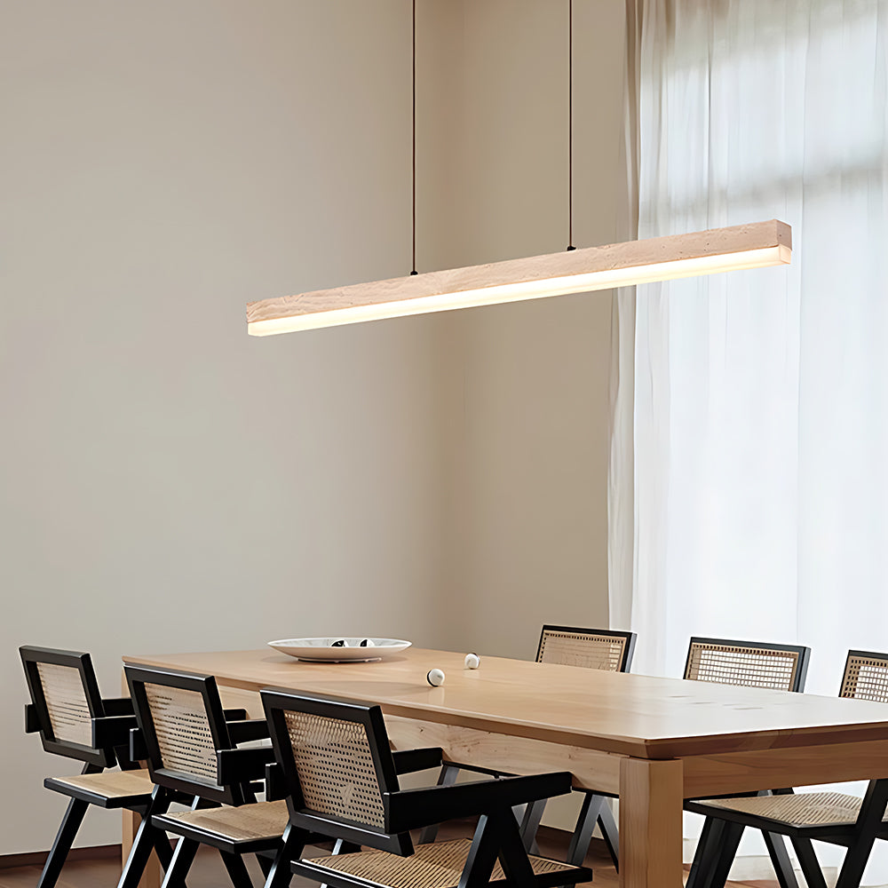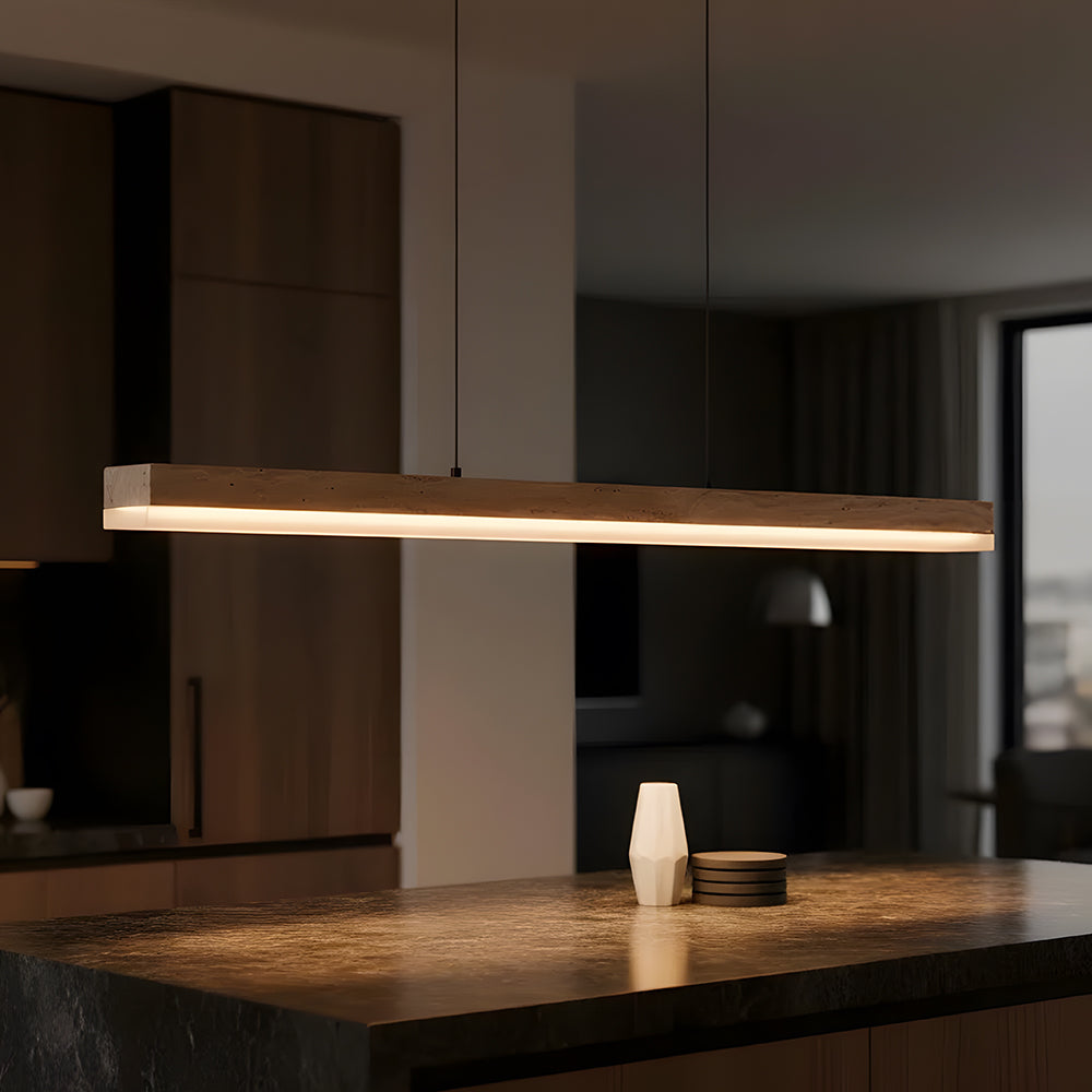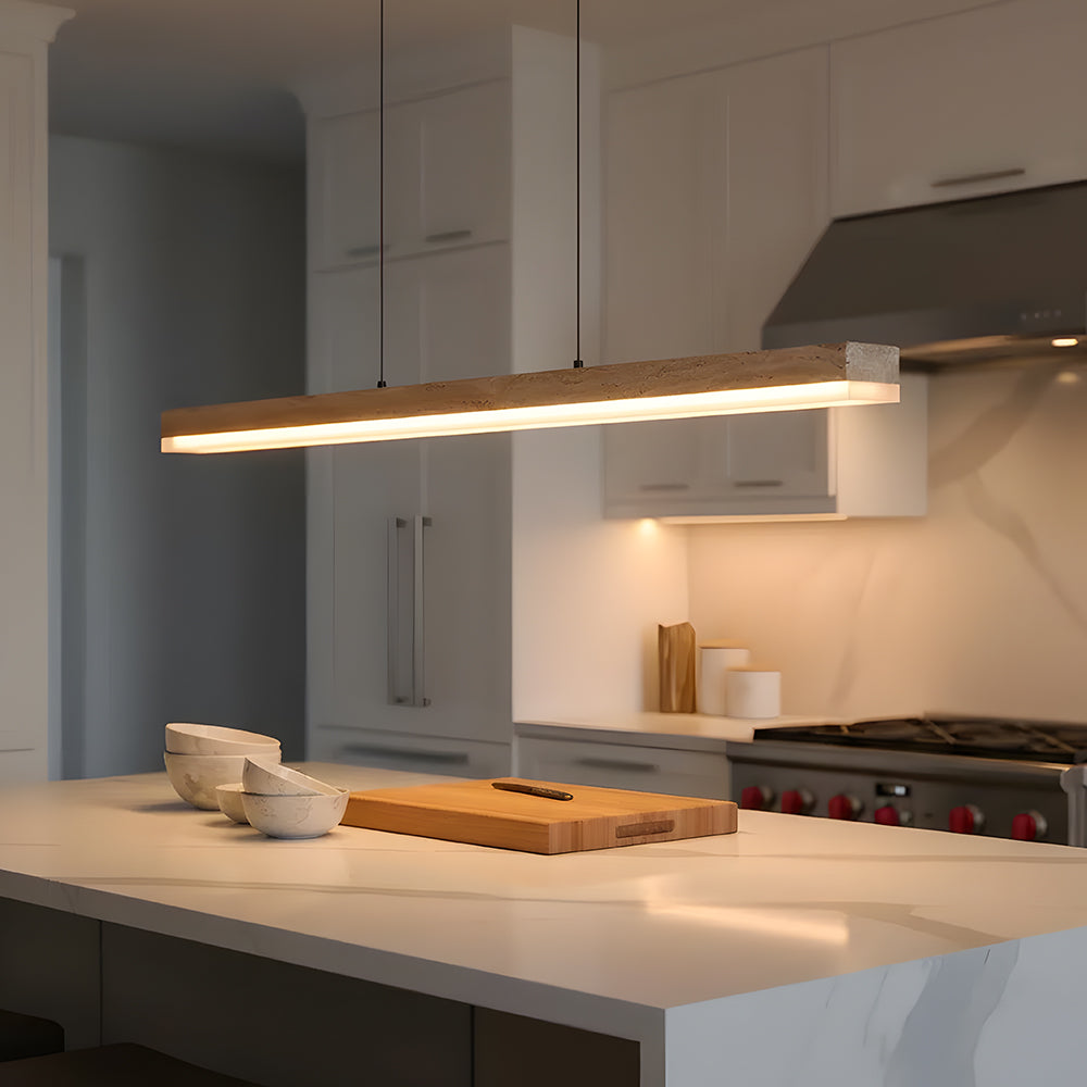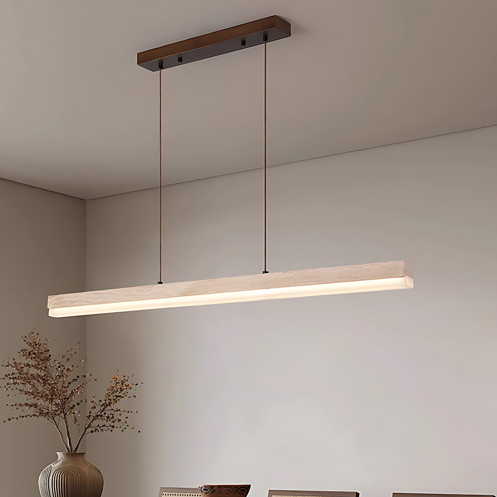 Understated Retro Travertine And Walnut Wood Linear Pendant Light
