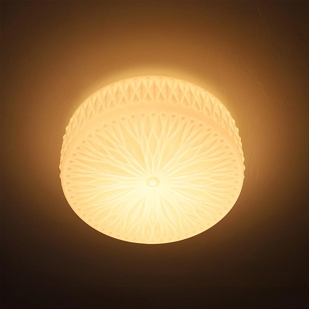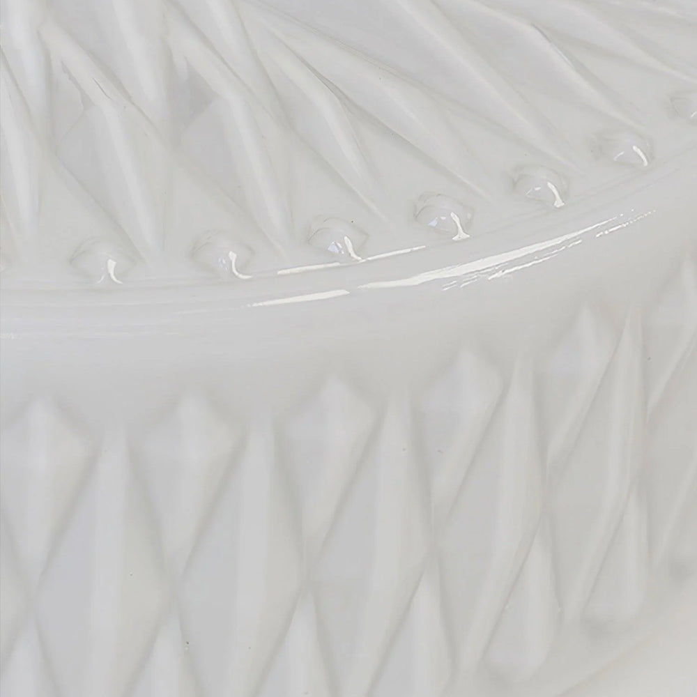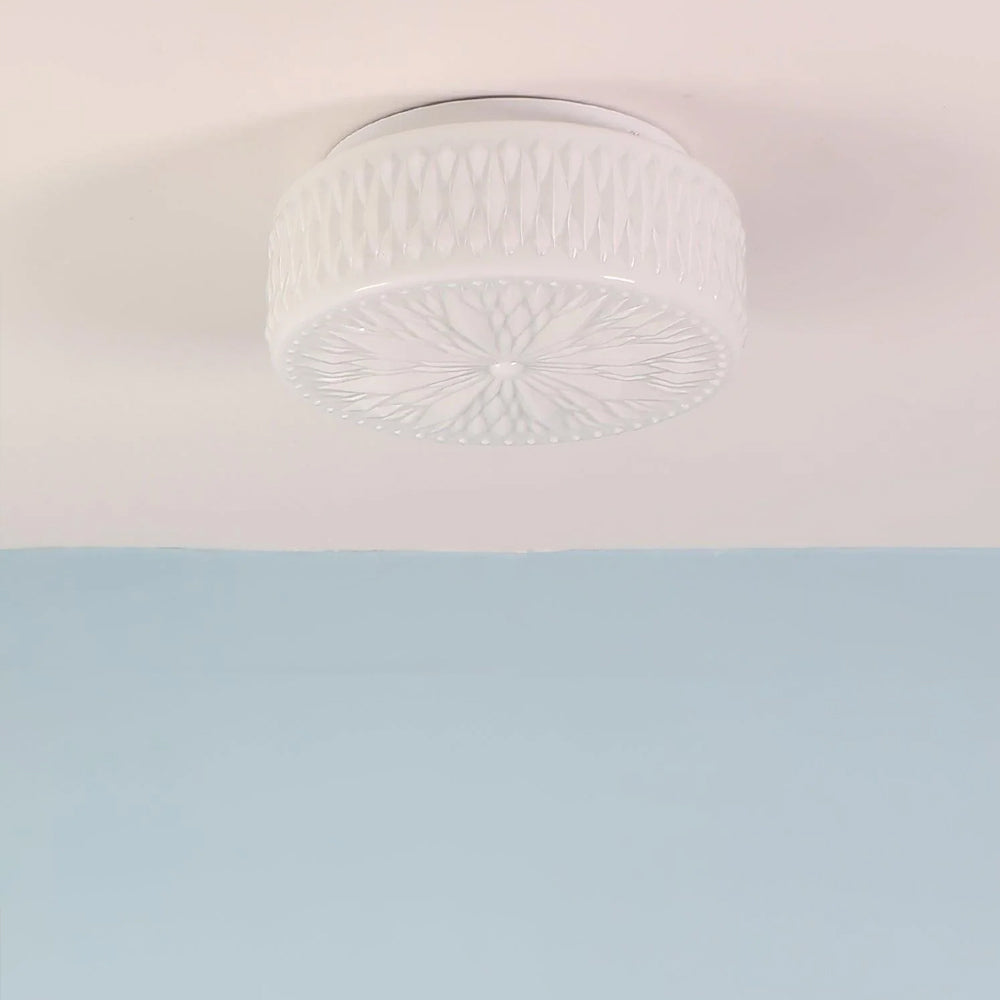 Elegant vintage design meets everyday practicality! Durable, easy-to-clean outer relief glass pairs with a white acrylic diffuser (even light). Available in one size and two colors for versatile decor matching.