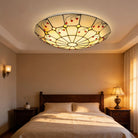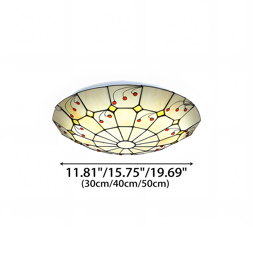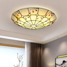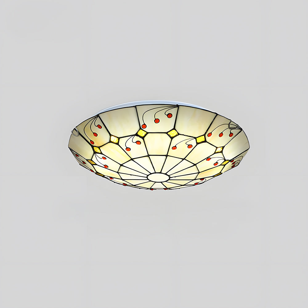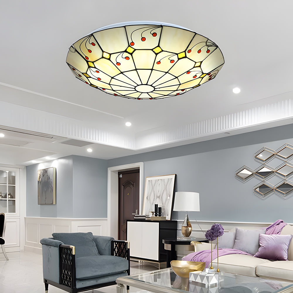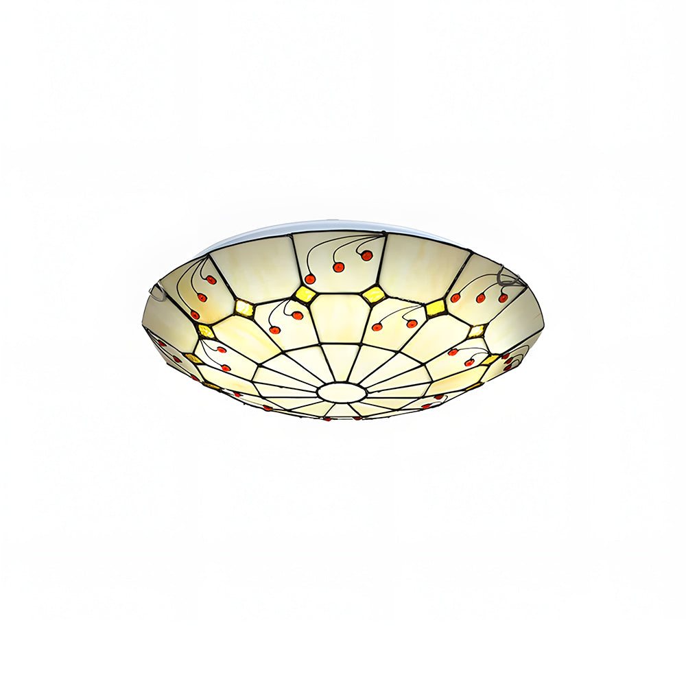 This ceiling light reproduces the classic Tiffany design of the late 19th century, based on a circular silhouette. Hand-cut colored glass pieces are assembled into patterns through inlay craftsmanship. It is suitable for living rooms, dining areas, hotels, and other spaces.