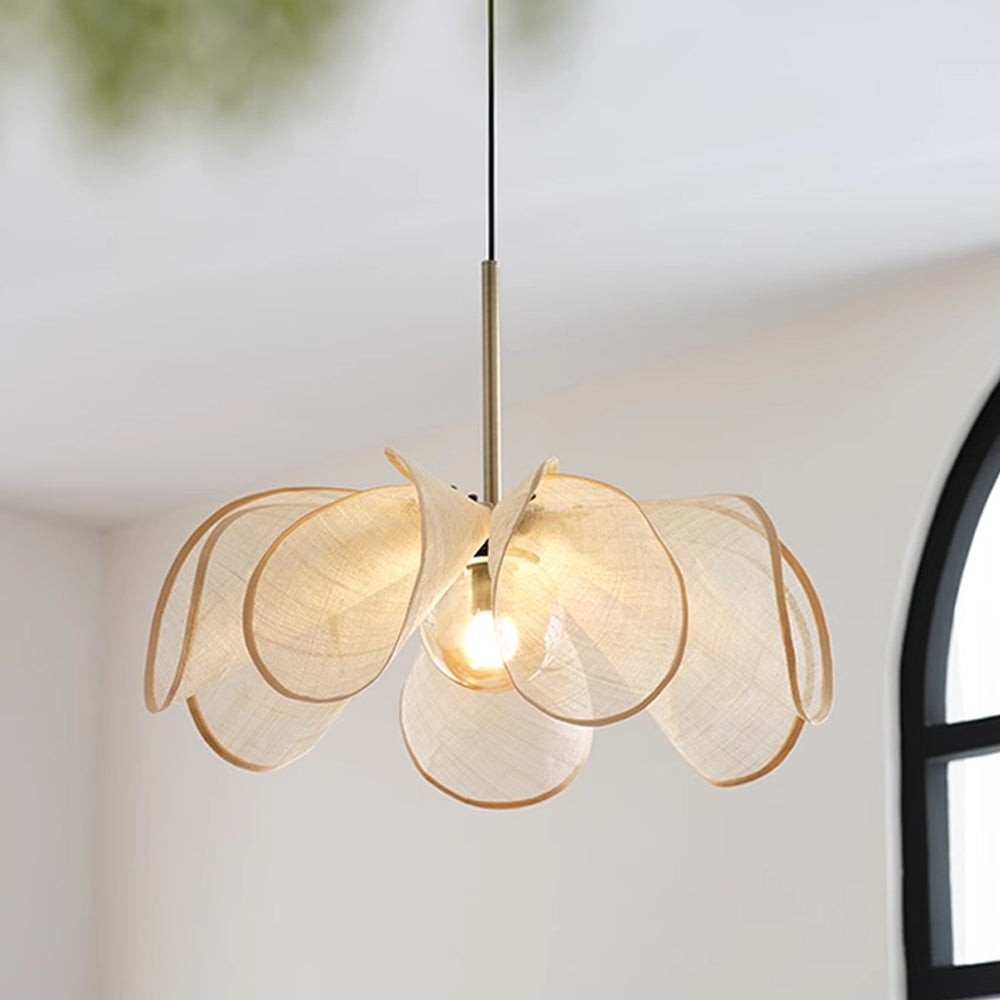 Japanese Style Handmade Wabi-sabi Petal Shape Rattan Pendant Light